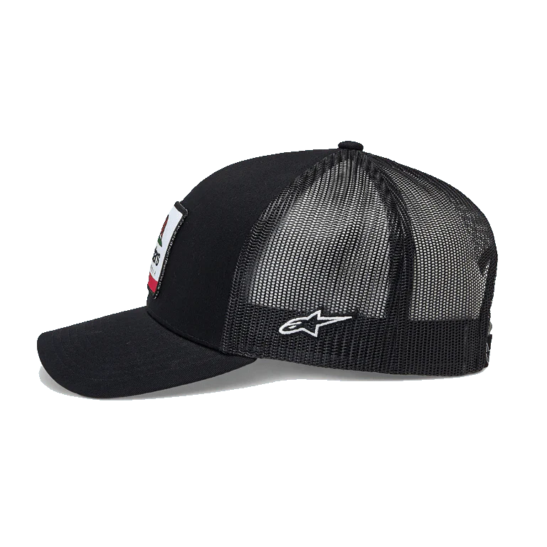 • Visera curvada con copa estructurada• Cierre ajustable tipo snap back• Tejido de sarga en el frente, malla de poliéster en la parte trasera• Parche tejido con acabado merrow• Etiquetado interno y trasero