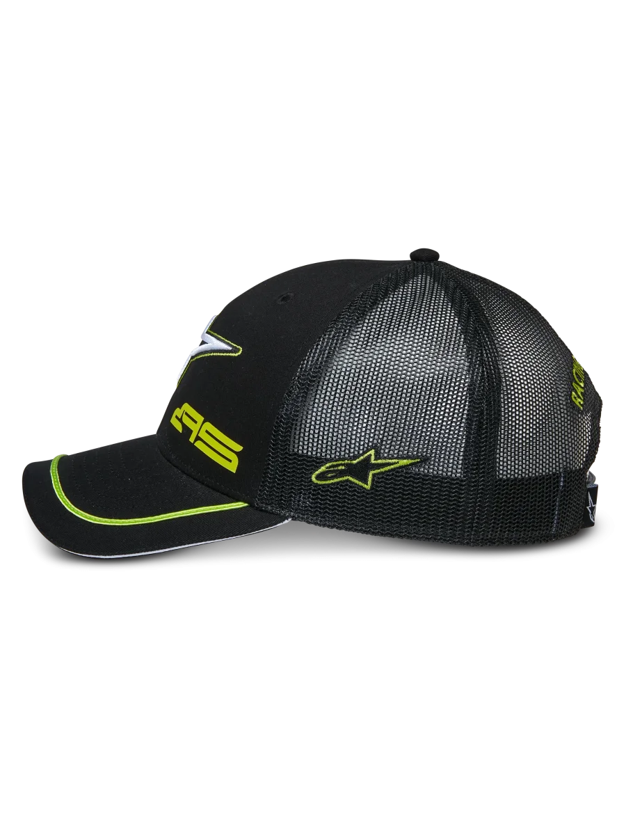 • Visera curvada con copa estructurada• Cierre ajustable tipo snap• Tejido principal de sarga• Bordado 3D frontal con logo impreso, logos bordados planos en laterales y parte trasera, con ribete de sutache• Etiquetado interno y trasero