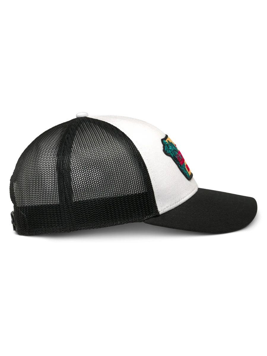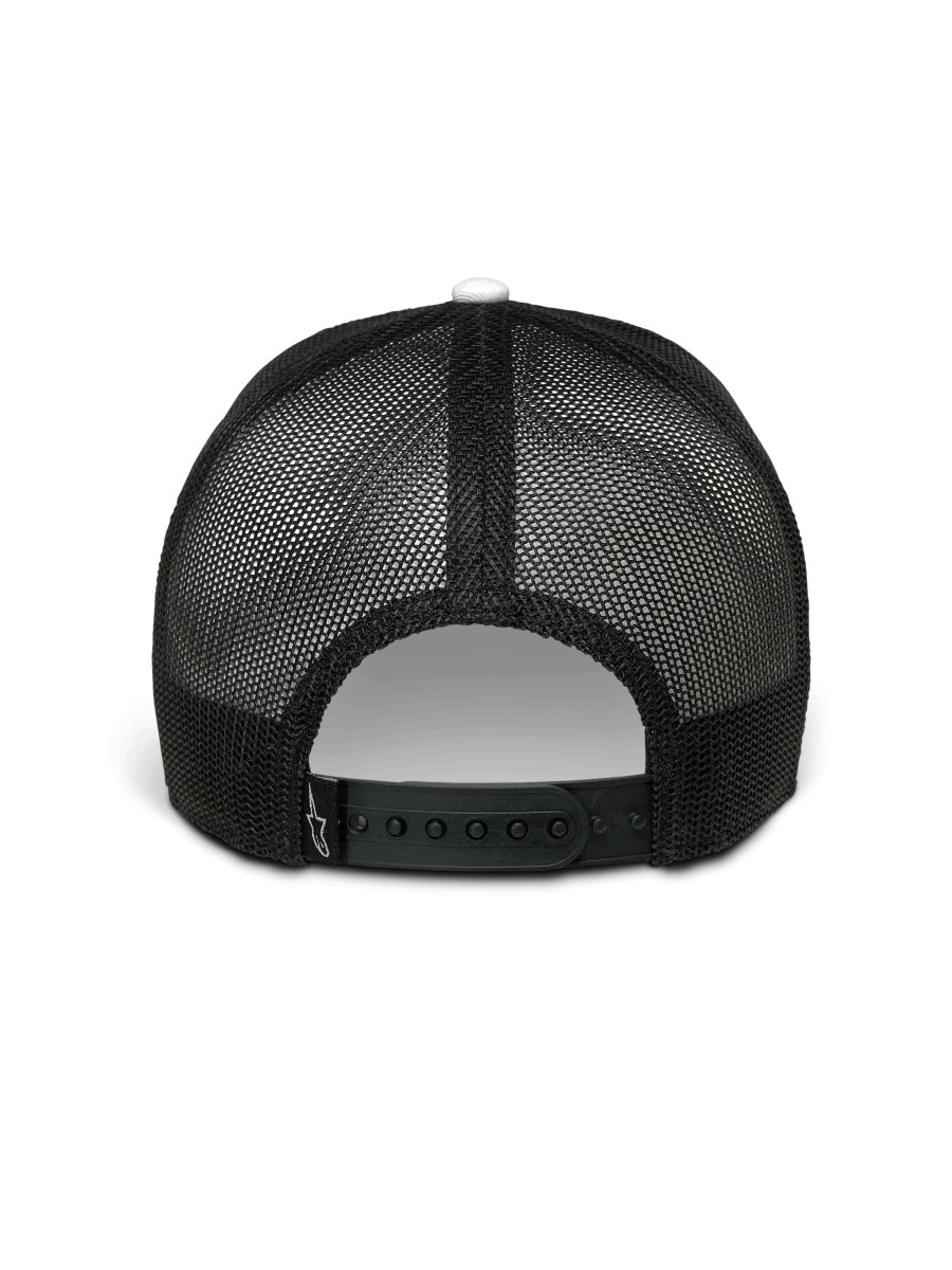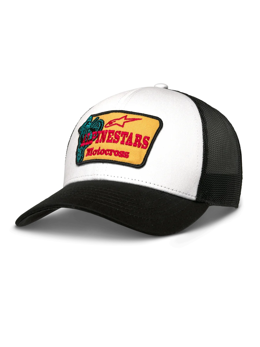 • Parche bordado de sarga con borde merrow en la parte frontal