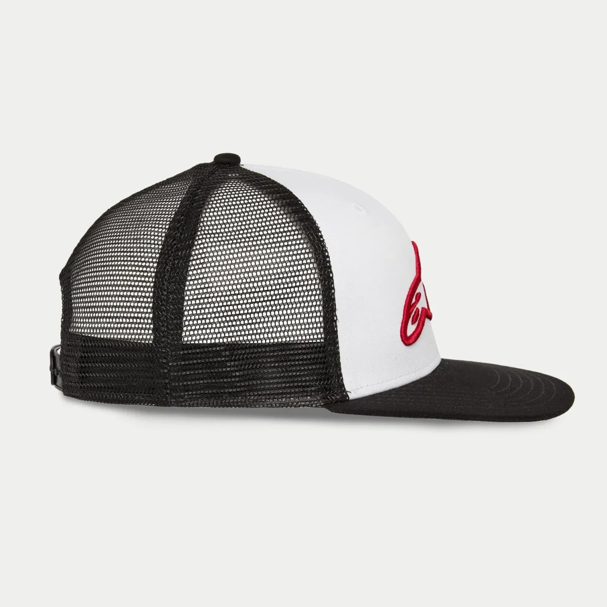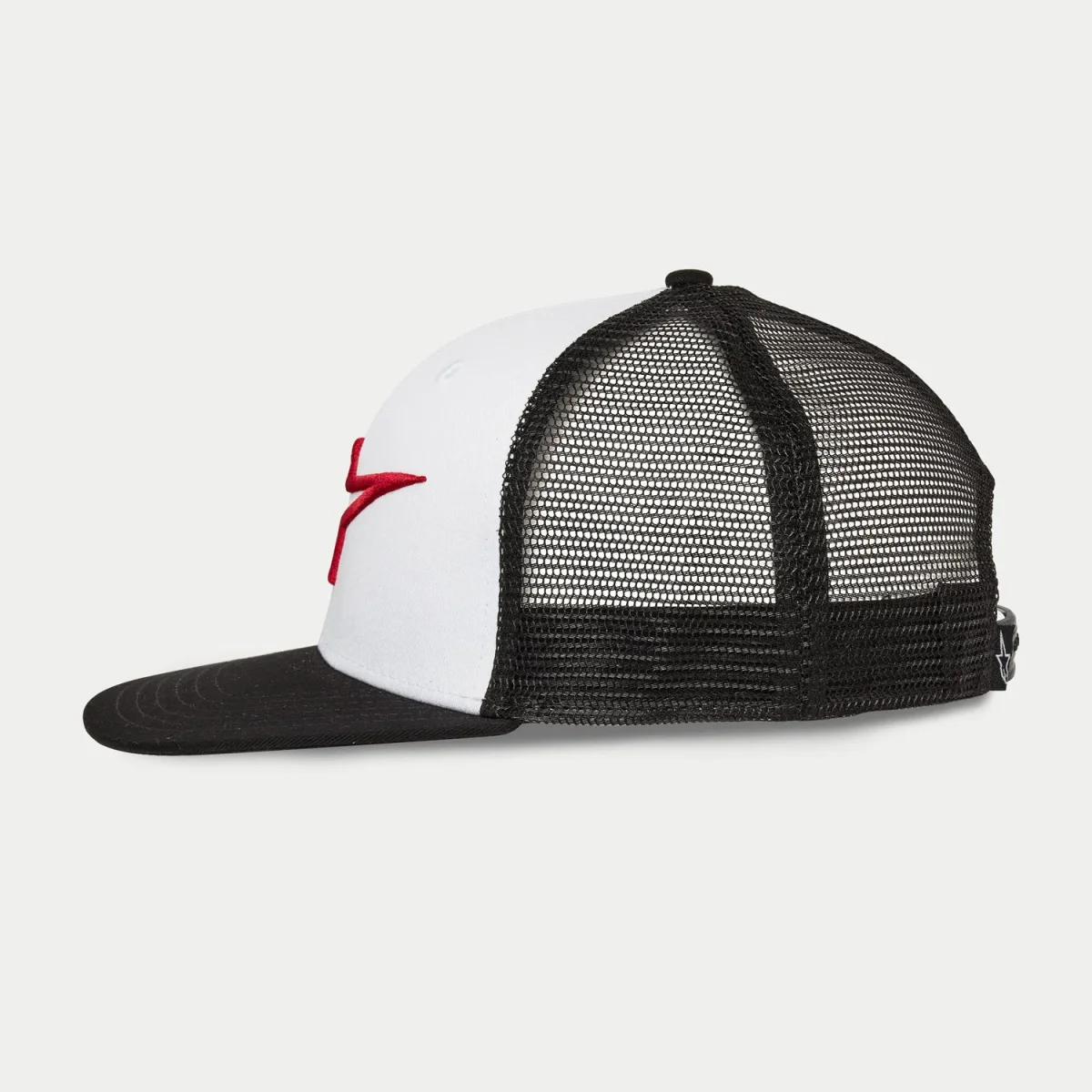 60% Algodón / 40% Poliéster Gorra plana con corona estructurada Cierre de presión Tela principal delantera de twill, tela trasera de mallaLogotipo bordado en 3DEtiquetado interno y trasero