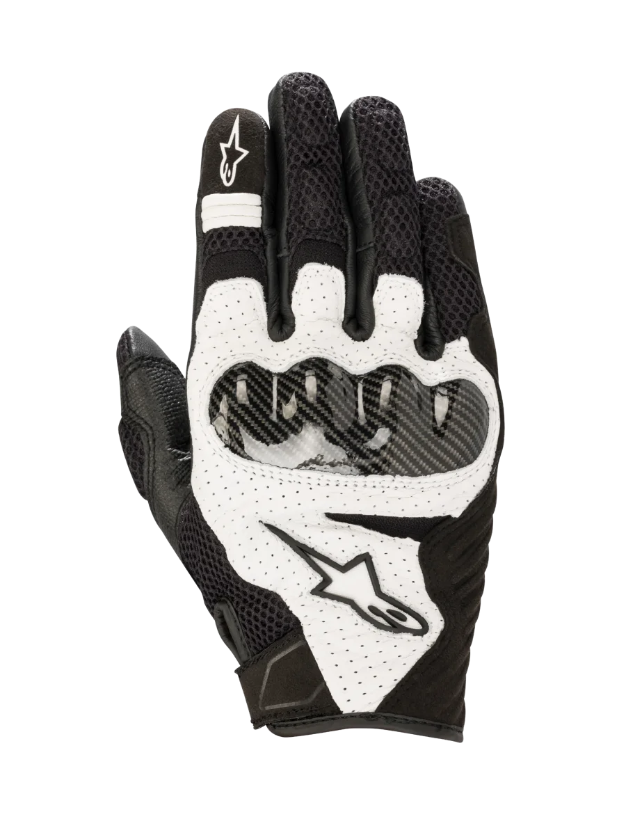 Incorporando un innovador dise–o evolucionado y confección con nuevos materiales para lograr los más altos estándares de certificación CE, los guantes SMX-2 Air Carbon V2 Glove incorporan protectores de nudillos en carbono, malla técnica 3D y una confección de la capa principal en piel que proporciona excelentes niveles de protección y flujo de aire refrigerador para esos días cálidos de verano que nos movemos por el tráfico de la ciudad. • Confeccin de la capa principal en multi-panel, duradero y de nuevo diseo, que incorpora piel de plena flor y malla 3D para durabilidad, resistencia a la abrasin y altos niveles de transpiracin. • Insercin adherente en innovadora microfibra y PU estratégicamente posicionada en la palma y pulgar para excelentes niveles de agarre y durabilidad. • Exclusiva insercin ergonmica extensible exclusiva de Alpinestars entre la palma y el puo que ofrece un mejorado rango de movimientos de la mano y mayor sensibilidad mientras operamos los mandos de la moto. • Incorpora una palma en ante de primera calidad y refuerzos en la zona de aterrizaje para agarre, control y durabilidad. • El innovador protector ergonmico de nudillos de carbono Alpinestars proporciona una excepcional proteccin contra los impactos y la abrasin. El protector está reforzado en el interior con una gruesa espuma EVA para mejores niveles de ajuste, confort y absorcin de los golpes. • La parte superior de los dedos y el dorso incorpora malla de poliéster e inserciones en TPR para una resistencia adicional frente a los impactos y ventilacin en áreas críticas. • Paneles en espuma EVA que absorbe los impactos en el pulgar para unas prestaciones adicionales frente a los impactos. • Superficie de los dedos y pulgar en malla 3D para prestaciones refrigeradoras. • Confeccin pre-curvada de los dedos para reducir la fatiga de pilotaje. • Puos en neopreno más cierre de velcro y TPR para un cierre seguro y personalizado. • Punta del dedo índice y pulgar compatible con pantalla táctil que permite el uso de smartphones y sistemas GPS. • Paredes de los dedos extensible para mejorar la flexibilidad y el confort.