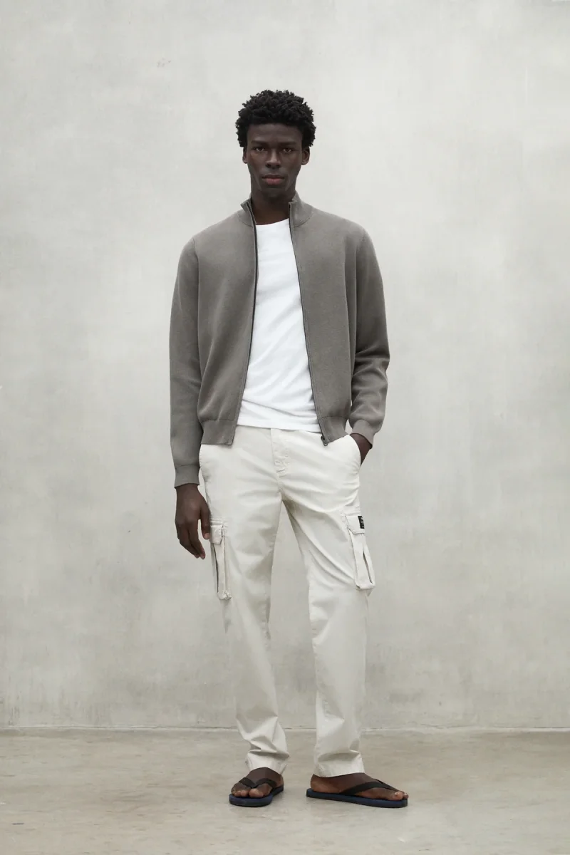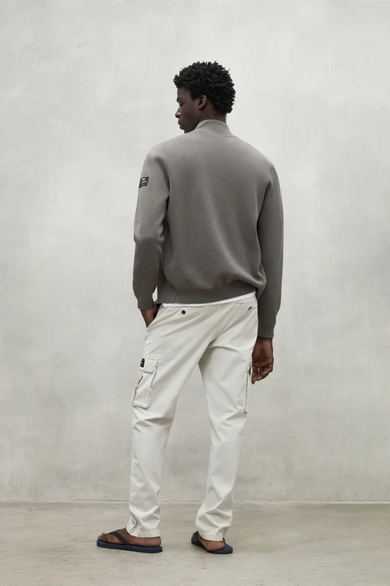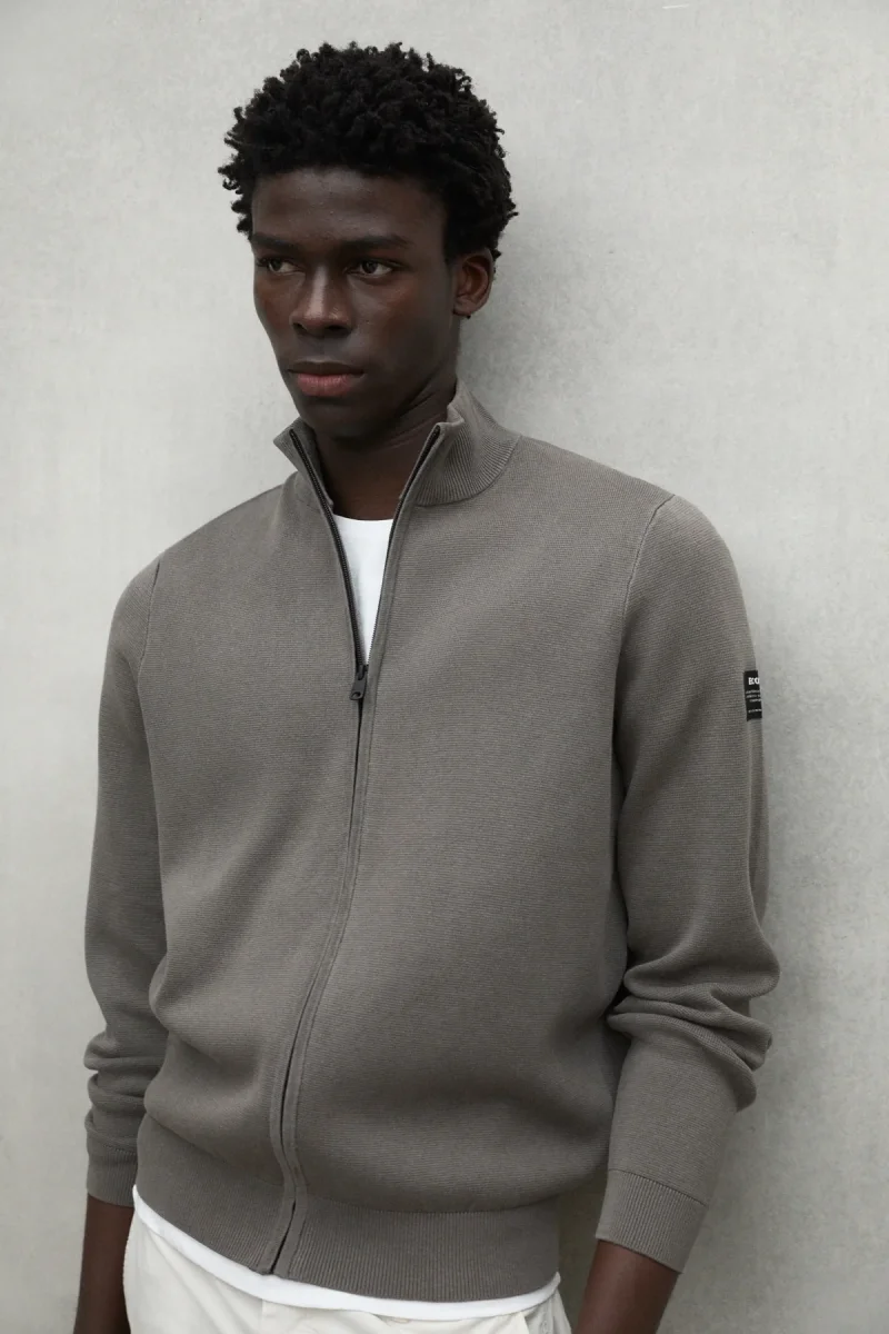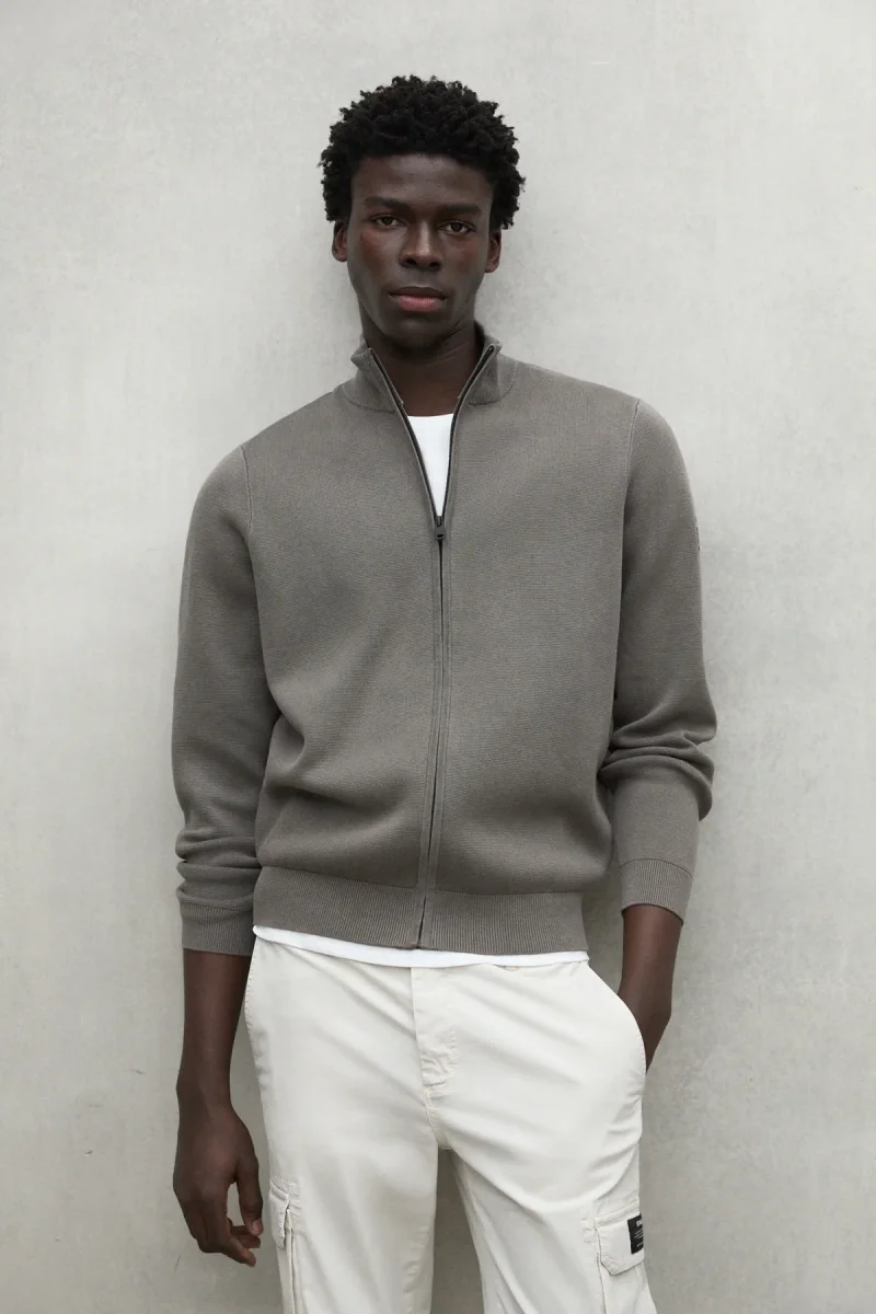El jersey Mandarina está hecho con un tejido principal de 70% algodón orgánico y 30% lino. En el cultivo del algodón orgánico se evita el uso de pesticidas y fertilizantes potencialmente dañinos para la salud y el medio ambiente. Es ideal para aportar calidez y estilo a todos tus looks. Su media chaqueta de punto y detalles de canalé lo hacen perfecto para cualquier temporada.