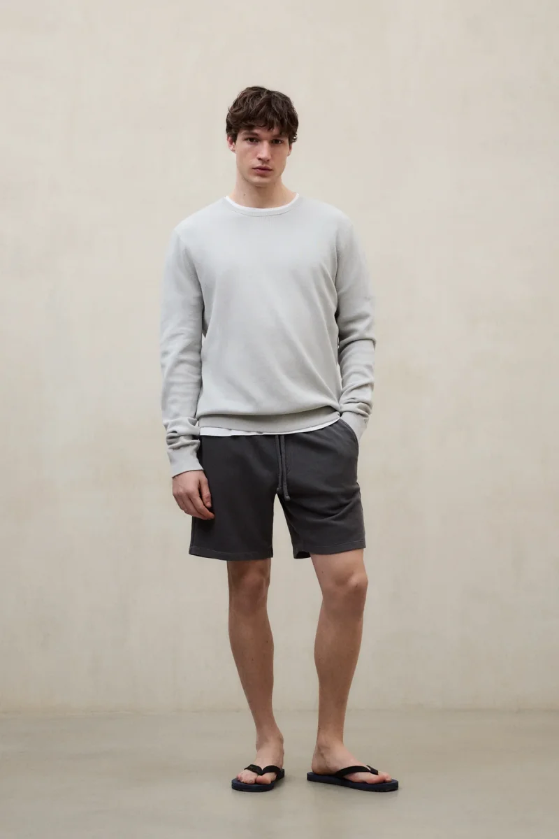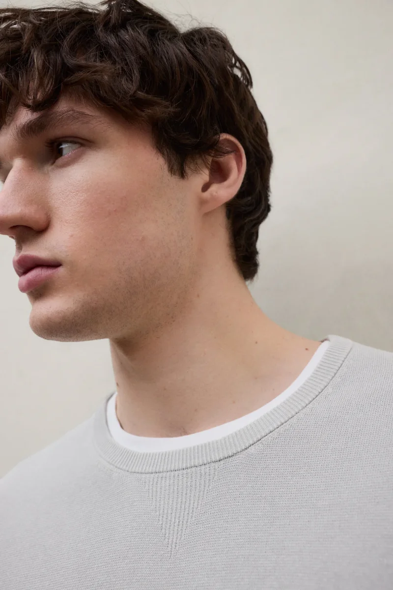 El Jersey Manzano está fabricado con un tejido principal de 70% Algodón orgánico. Fit regular. Canalé en cuello, puños y bajo.