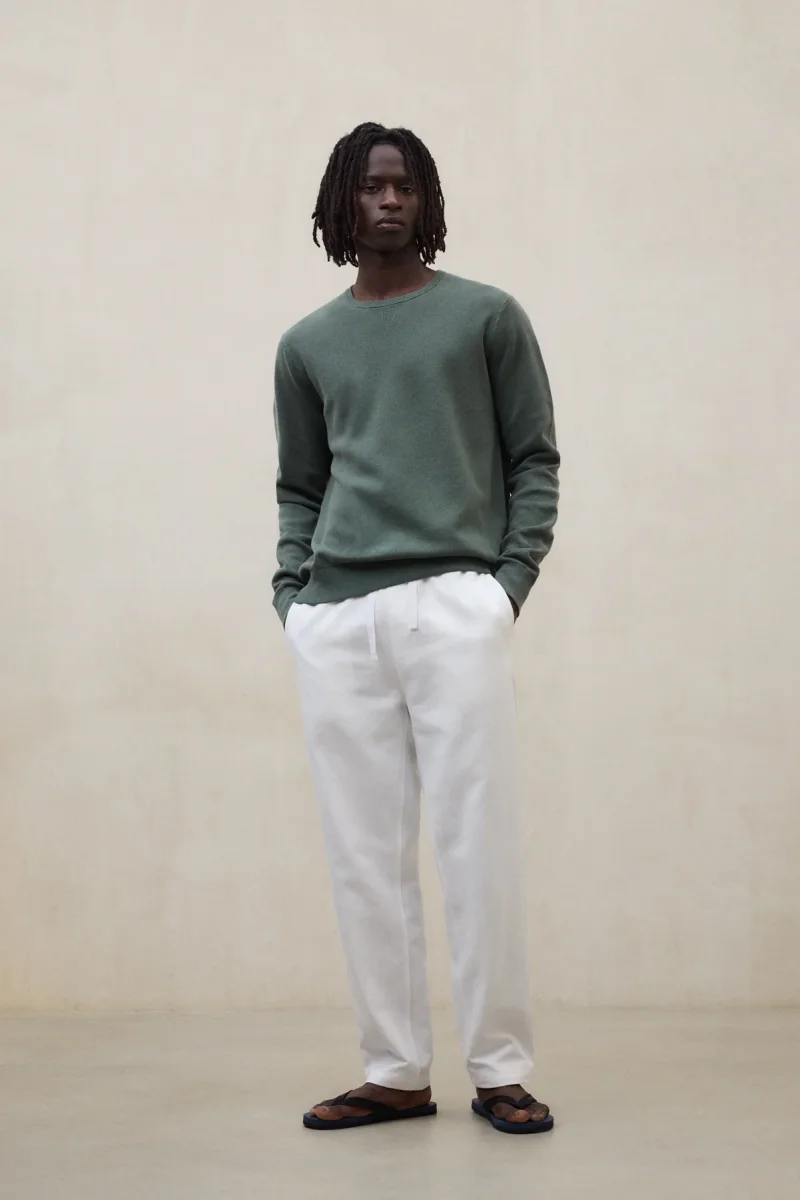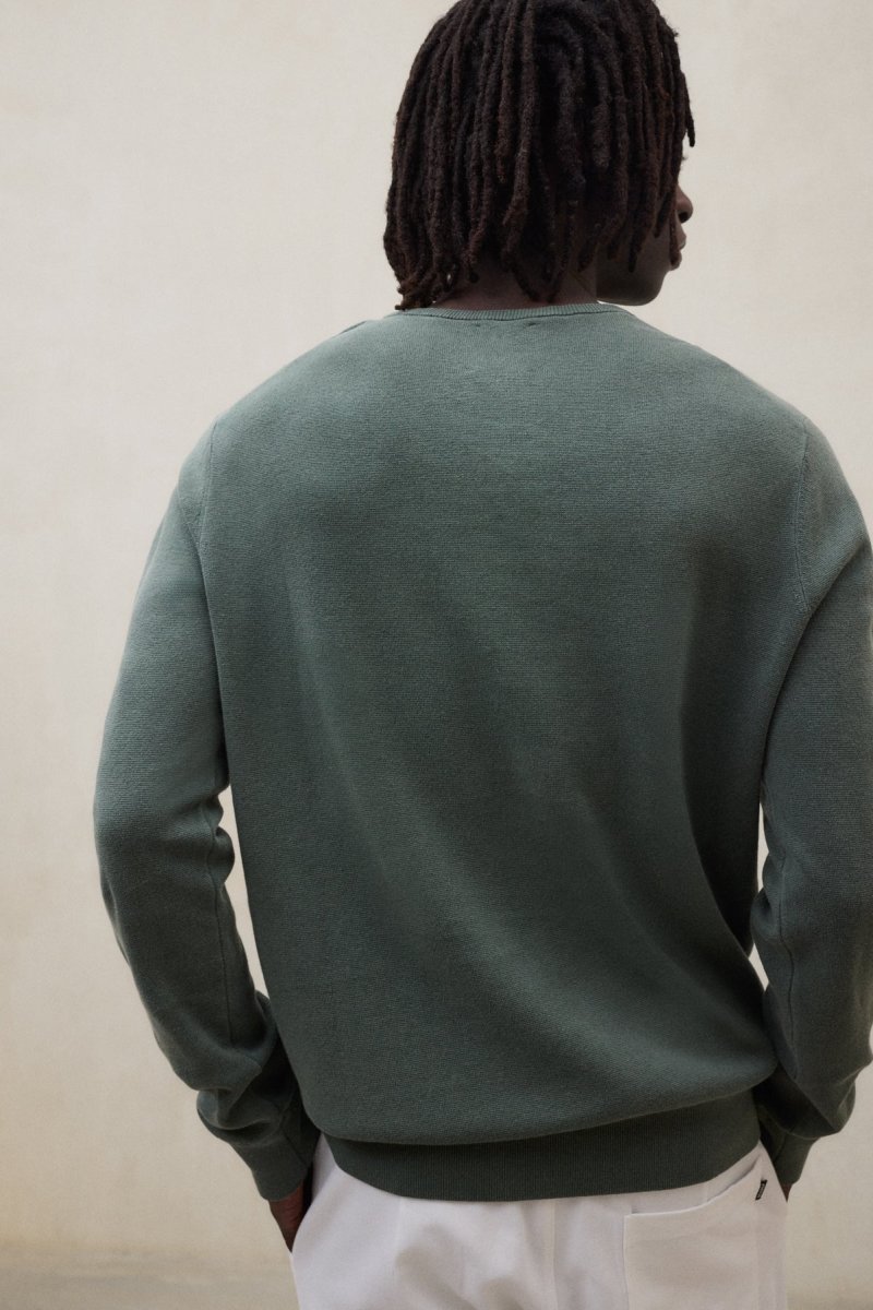 El Jersey Manzano está fabricado con un tejido principal de 70% Algodón orgánico. Fit regular. Canalé en cuello, puños y bajo.