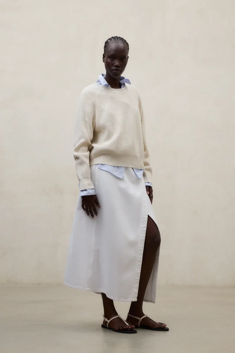El Jersey Noni está fabricado con un tejido principal de 100% Algodón reciclado. Fit regular. Mangas raglán y cuello, puños y bajo de canalé.