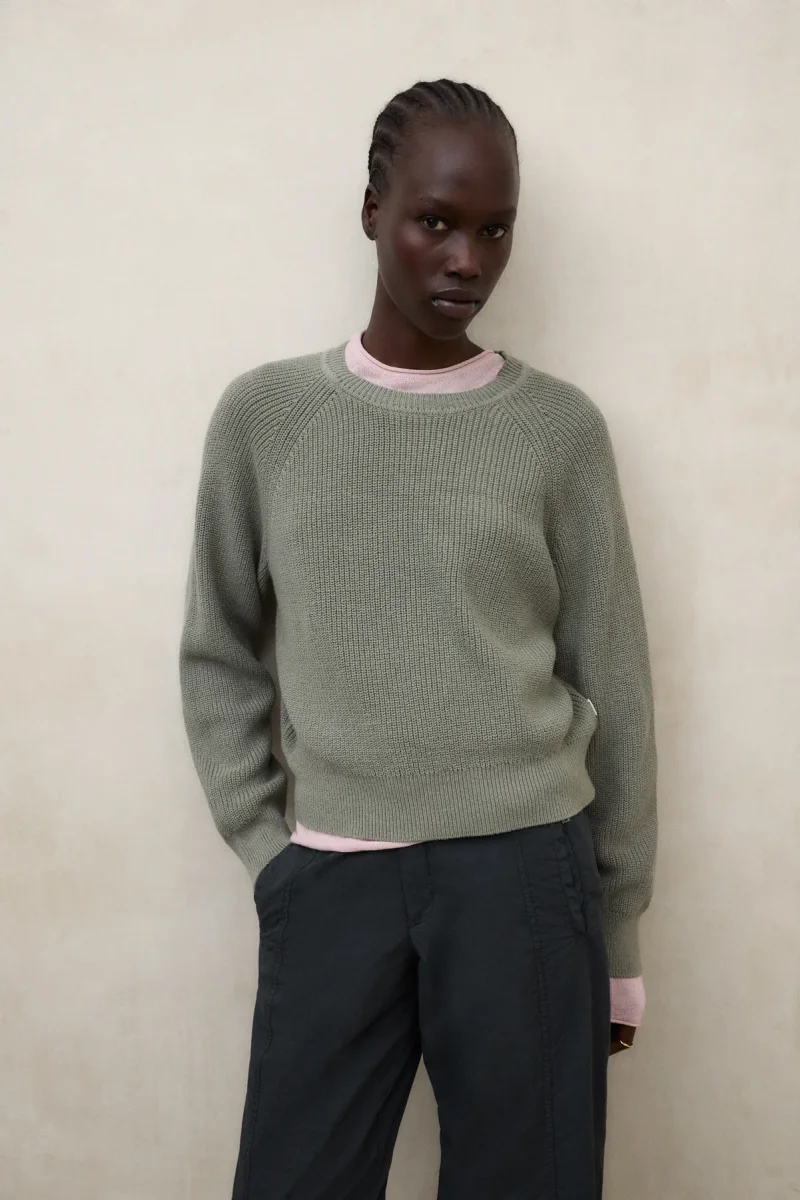 El Jersey Noni está fabricado con un tejido principal de 100% Algodón reciclado. Fit regular. Mangas raglán y cuello, puños y bajo de canalé.