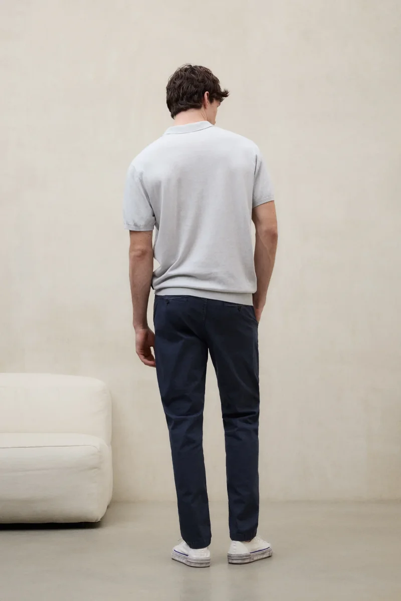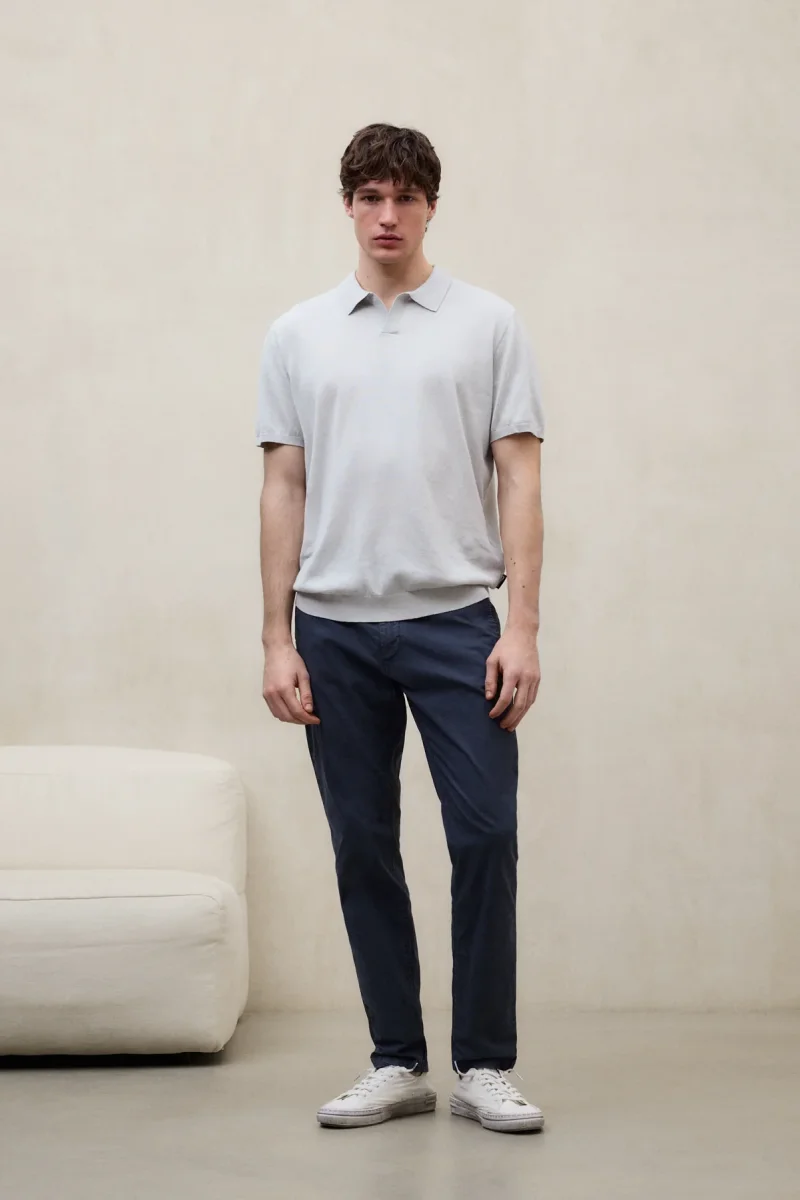 El Jersey Olmo está fabricado con un tejido principal de 70% Algodón orgánico. Fit regular. Cuenta con cuello de camisa y canalé en el cuello.