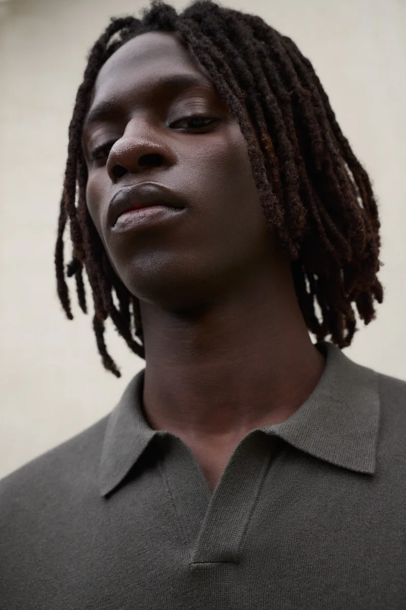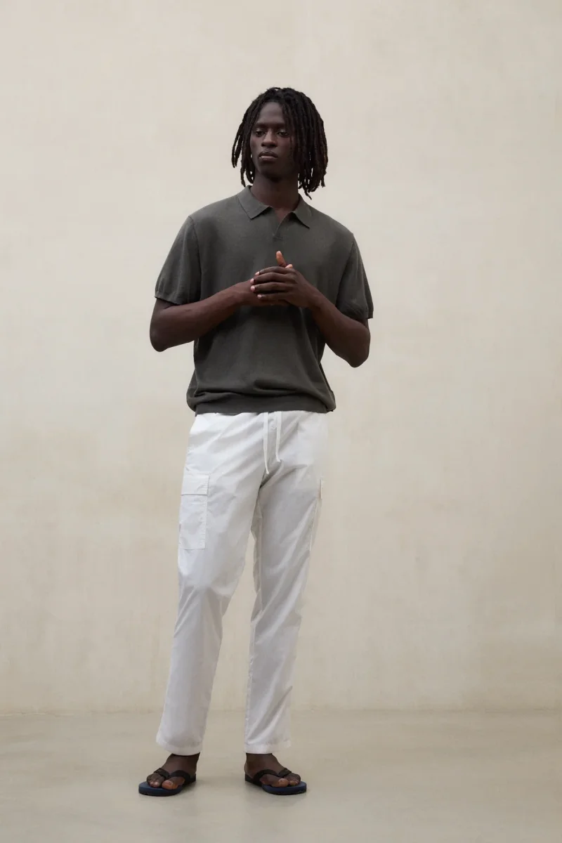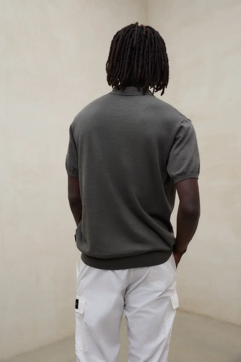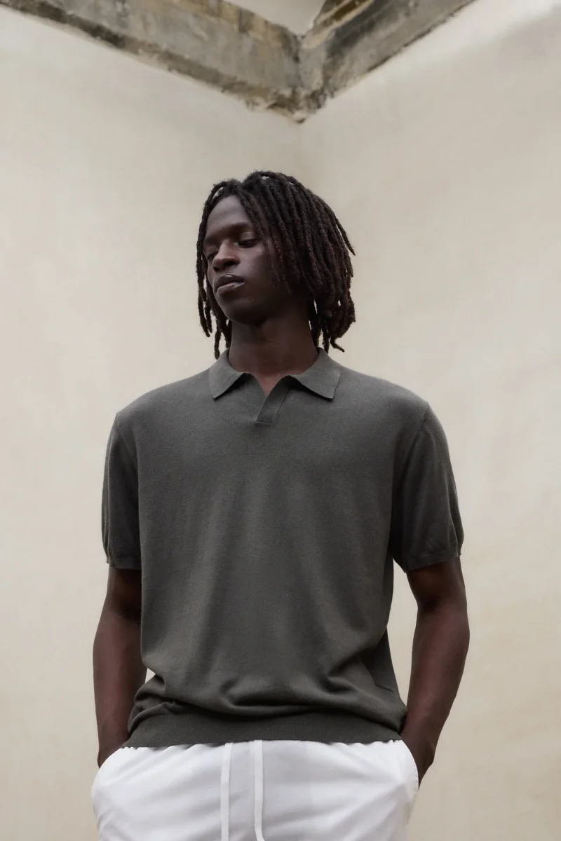 El Jersey Olmo está fabricado con un tejido principal de 70% Algodón orgánico. Fit regular. Cuenta con cuello de camisa y canalé en el cuello.