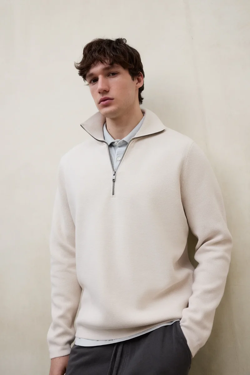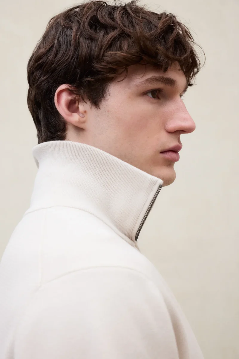 El Jersey Penti está fabricado con un tejido principal de 55% Algodón orgánico. Fit regular. Cuenta con cuello alto con cierre de cremallera.