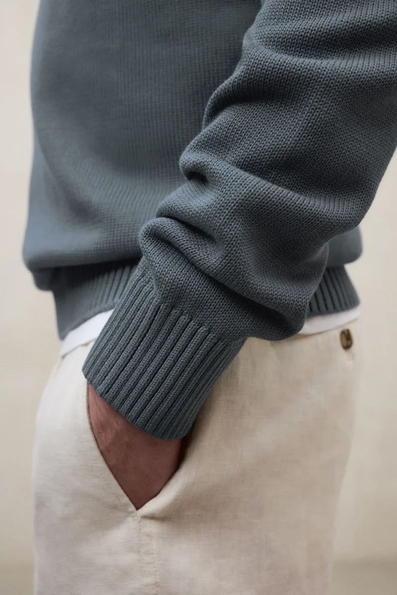 El Jersey Tail está fabricado con un tejido principal de 50% Algodón reciclado. Fit regular. Canalé en cuello, puños y dobladillo. Lavado a la piedra.