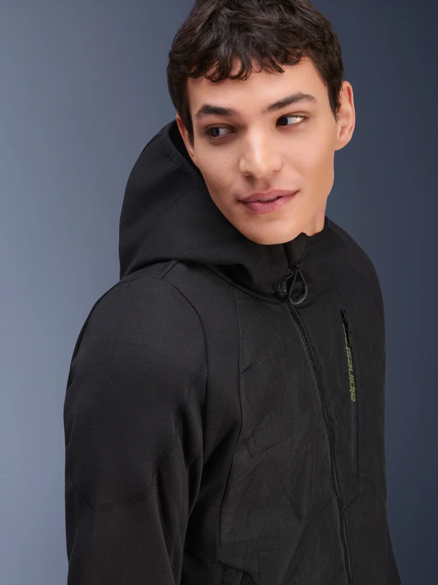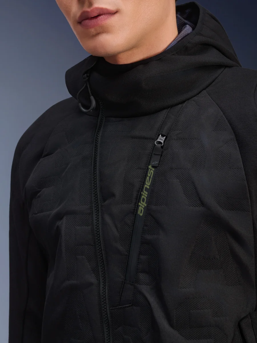Moderna sudadera con capucha acolchada de entretiempo diseñada para el motociclismo.