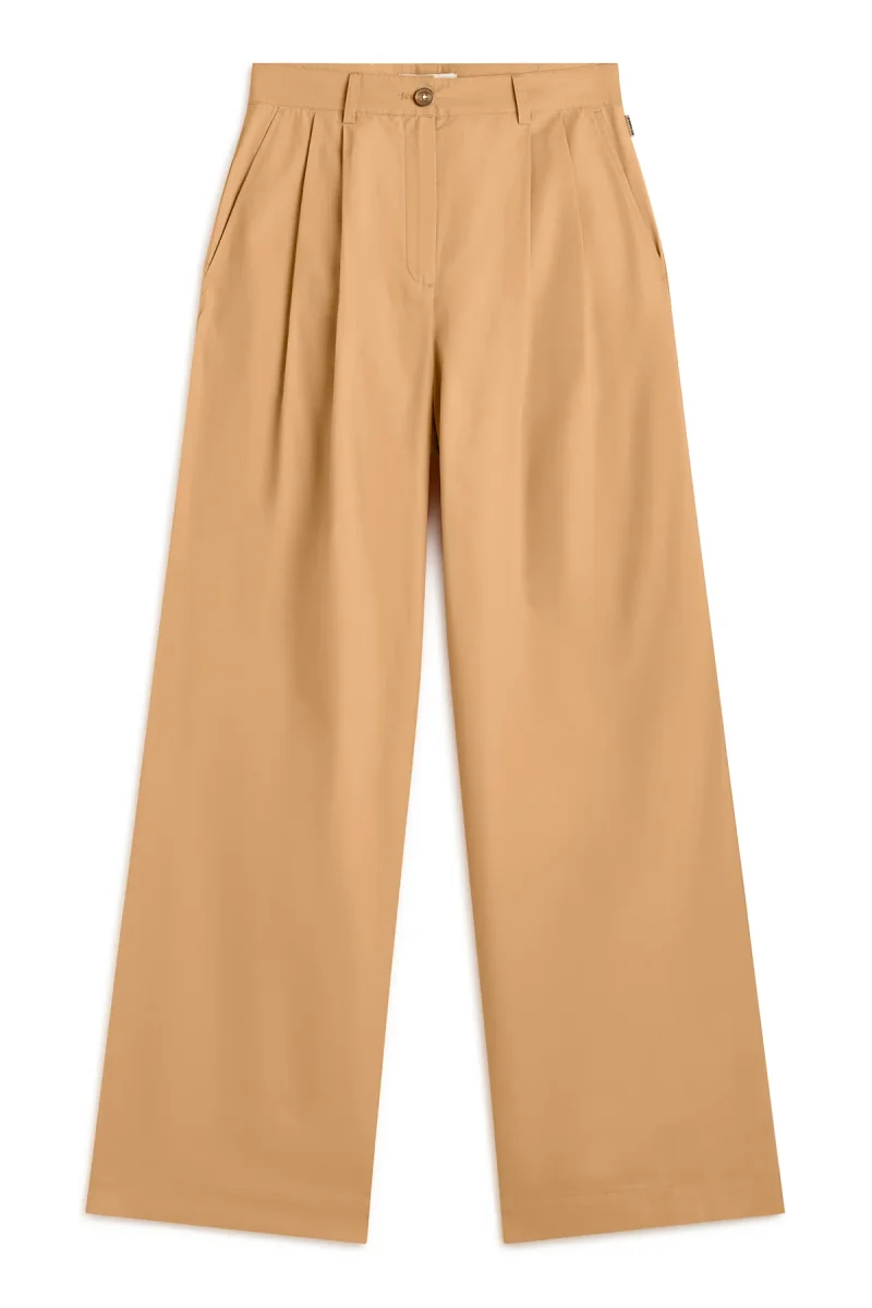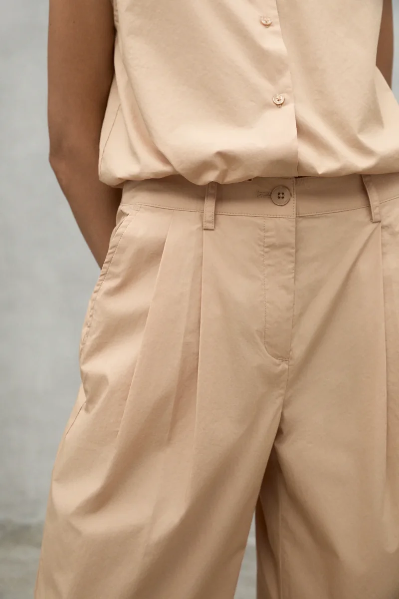Los pantalones Oniar, elaborados con 30% algodón reciclado, cuentan con cintura alta y pliegues delanteros que aportan un toque elegante. Su diseño es perfecto para un look versátil y atemporal.