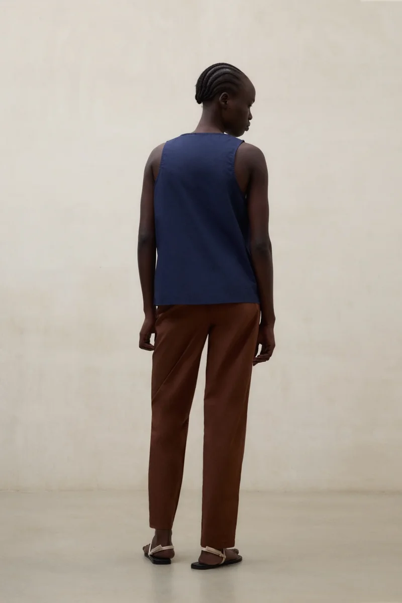 Los Pantalones Laga están fabricados con un tejido principal de 70% Algodón orgánico. Pierna ajustada. Cierre con cremallera y botón en la cintura. Cintura trasera elástica. Bolsillos laterales.