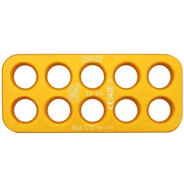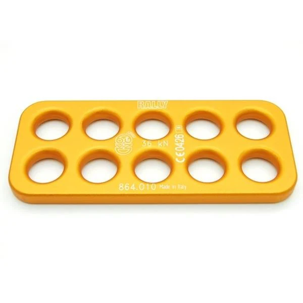 Espesor de 10 mm y agujeros biselados que permiten la inserción directa de dispositivos textiles (cuerdas, cuerdas auxiliares, cintas) sin la utilización de conectores.