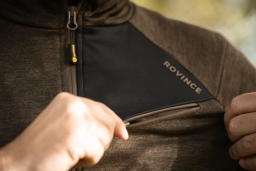 Confort y protección en la naturaleza. Este polar verde con cremallera de Rovince combina un tejido polar técnico ultra suave con protección biocida permanente contra garrapatas. Cuello alto y cremallera parcial para versatilidad estacional: capa exterior en meses cálidos o capa intermedia en invierno.