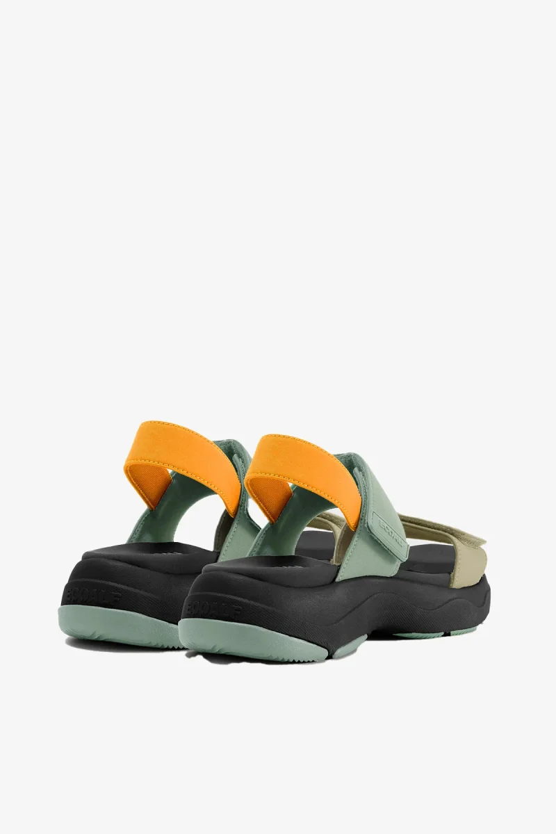 La Sandalia Carla está fabricada con un tejido prinicipal de 59% Poliéster reciclado. Una sandalia ligera sin componentes metálicos que te garantiza un confort extra.