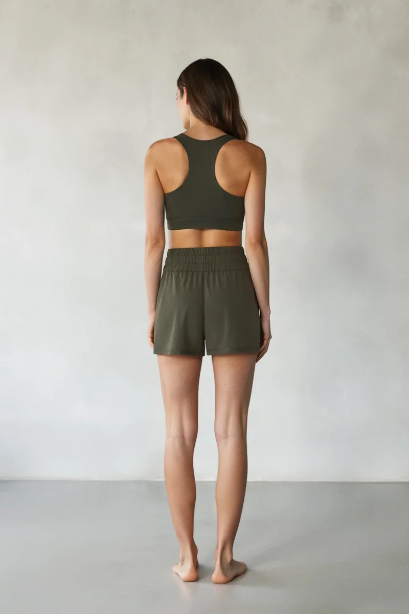 Los Shorts Spring verdes son una opción ligera y funcional pensada para acompañarte con comodidad en cada entrenamiento. Están fabricados con 85% Nylon reciclado y 15% de Elastano.