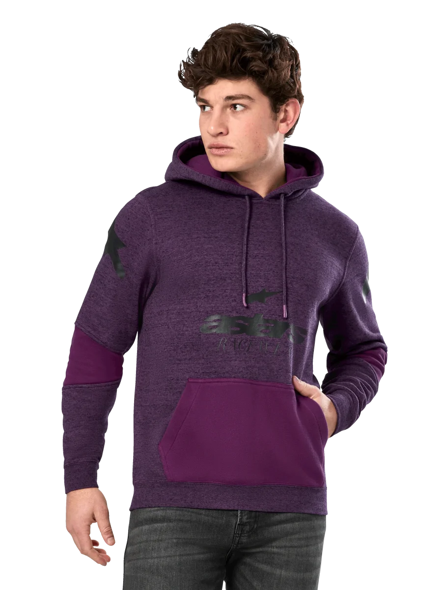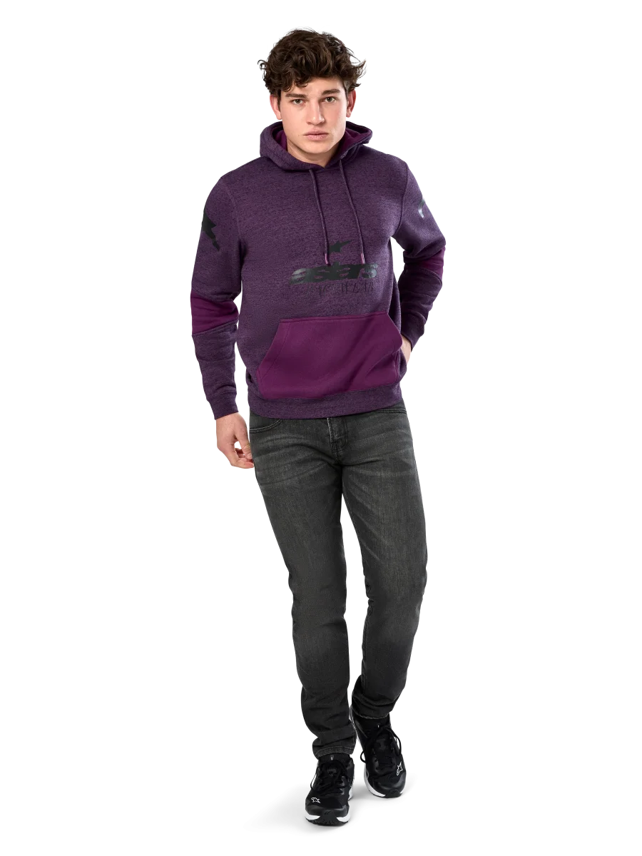 • Sudadera con capucha de forro polar teñida en prenda jaspeada• Sudadera con capucha y costuras en el cuerpo, bloques de tela, bolsillo canguro• Gráfico de logotipo frontal, logotipos en los hombros y gráfico de texto en la espalda• Capucha forrada, puntas de cordón sumergidas, puños y dobladillo de canalé• Etiqueta principal interna y marca de etiqueta externa.