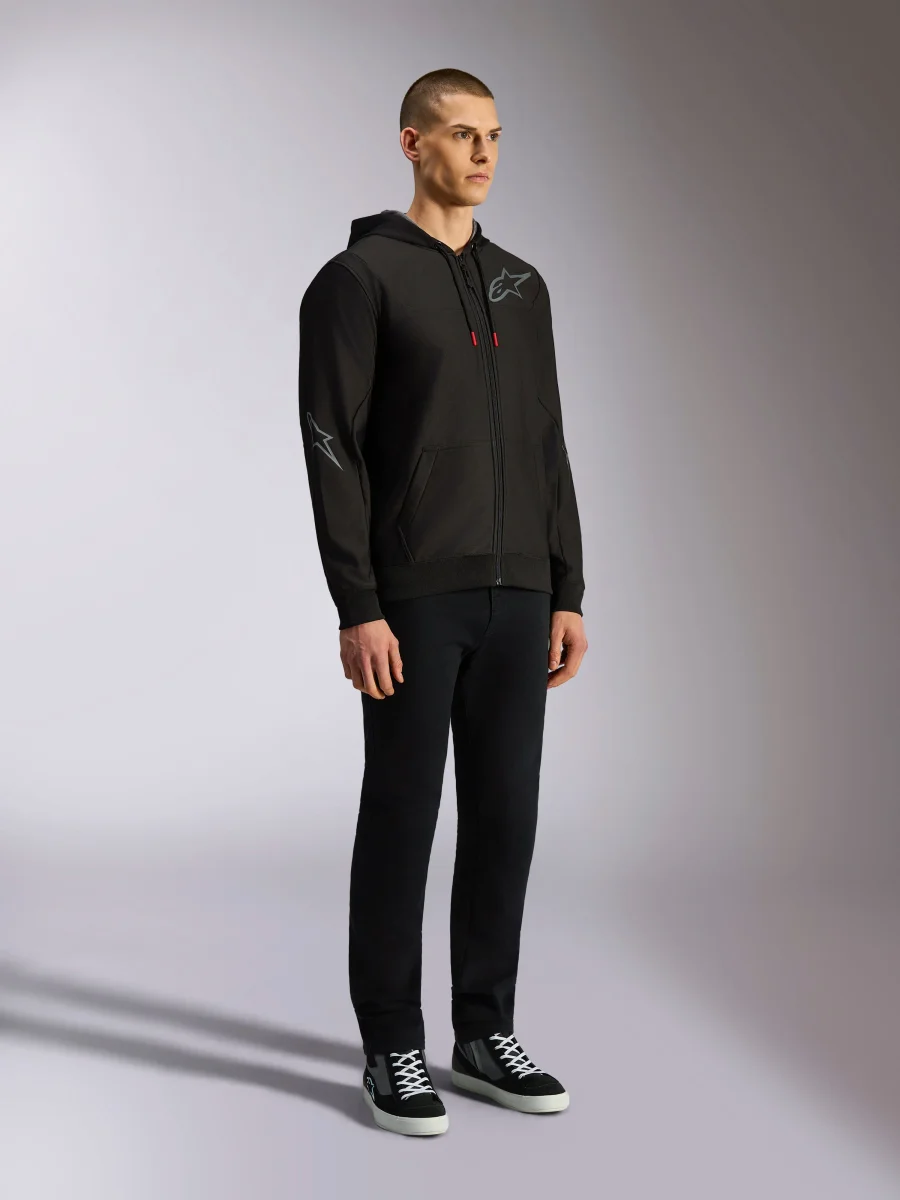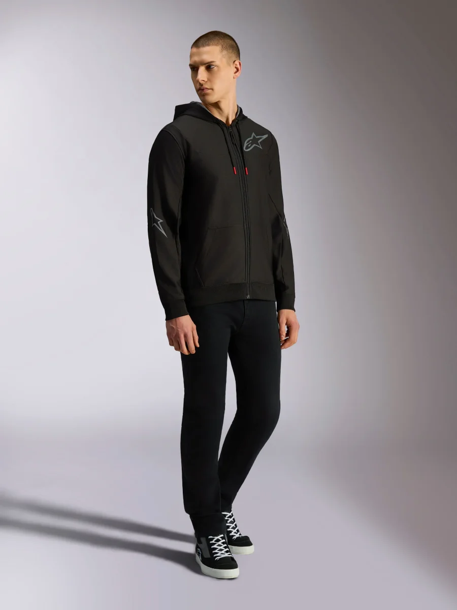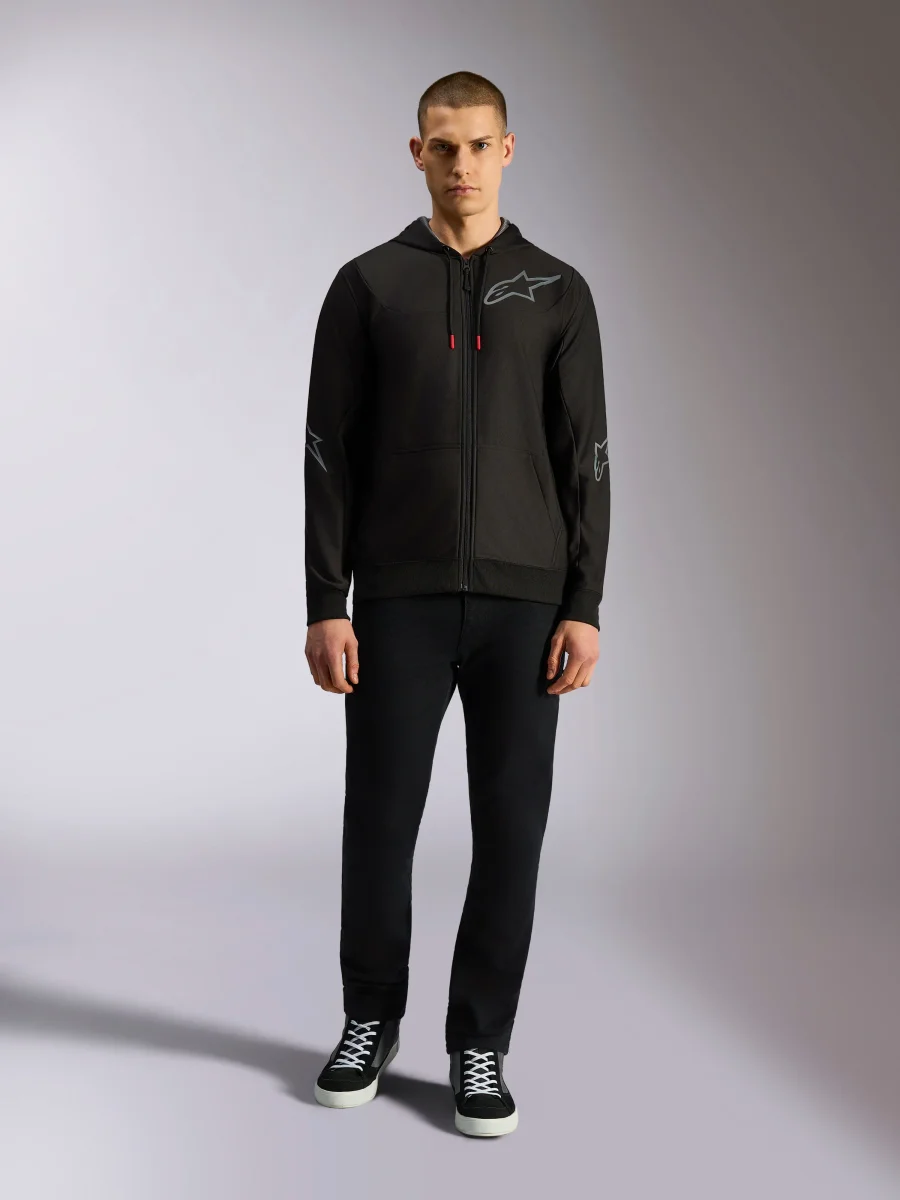 • Sudadera con capucha y cremallera frontal de forro polar de poliéster• Sudadera con capucha y cremallera frontal con estilo Alpinestars DNA, capucha forrada de malla, cordones técnicos, puños y dobladillo de canalé• Gran logotipo en el pecho, logotipos en los codos, palabra Astars en el antebrazo e impresiones de marca en la espalda• Etiqueta principal interna y marca de etiqueta externa.