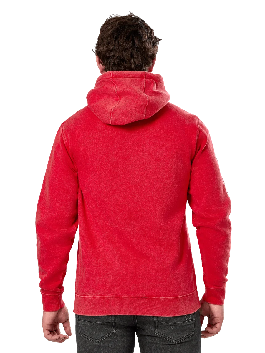 • Sudadera con capucha de forro polar teñida en prenda• Sudadera con capucha y bolsillo canguro• Logo extra grande en el frente y palabras alpinestars en las mangas• Capucha con forro propio, puntas de cordón sumergidas, puños y dobladillo de canalé• Etiqueta principal interna y marca de etiqueta externa.