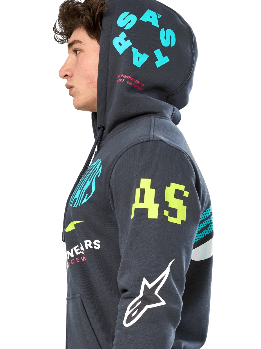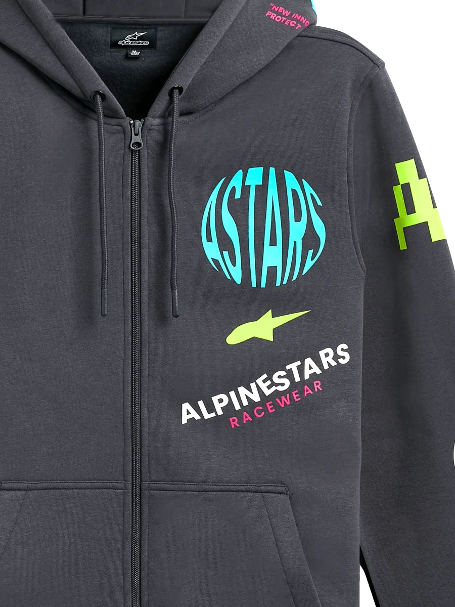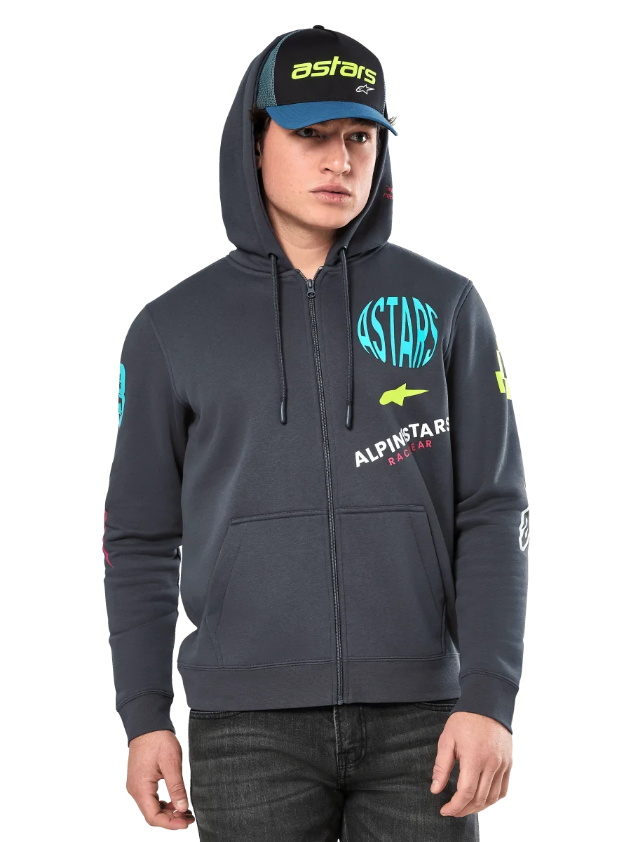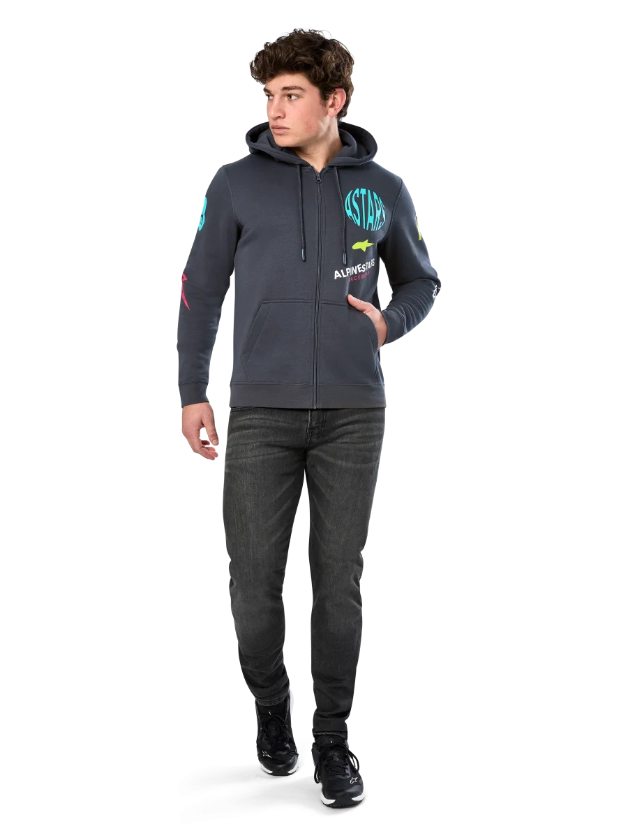 • Sudadera con capucha de forro polar con cremallera en la parte delantera• Sudadera con capucha y bolsillo canguro• Arte de múltiples logotipos en la parte delantera, mangas, espalda y capucha• Capucha forrada, puntas del cordón sumergidas, puños y dobladillo de canalé• Etiqueta principal interna y marca de etiqueta externa.