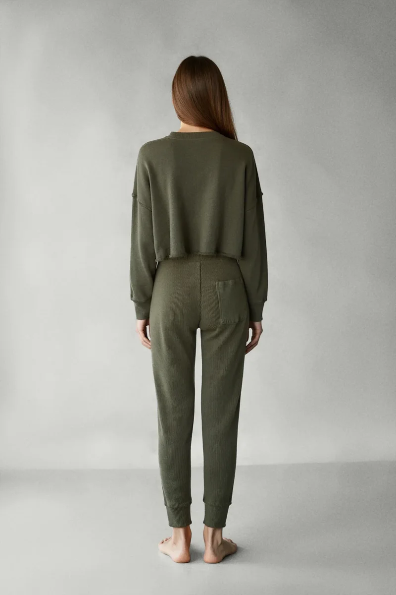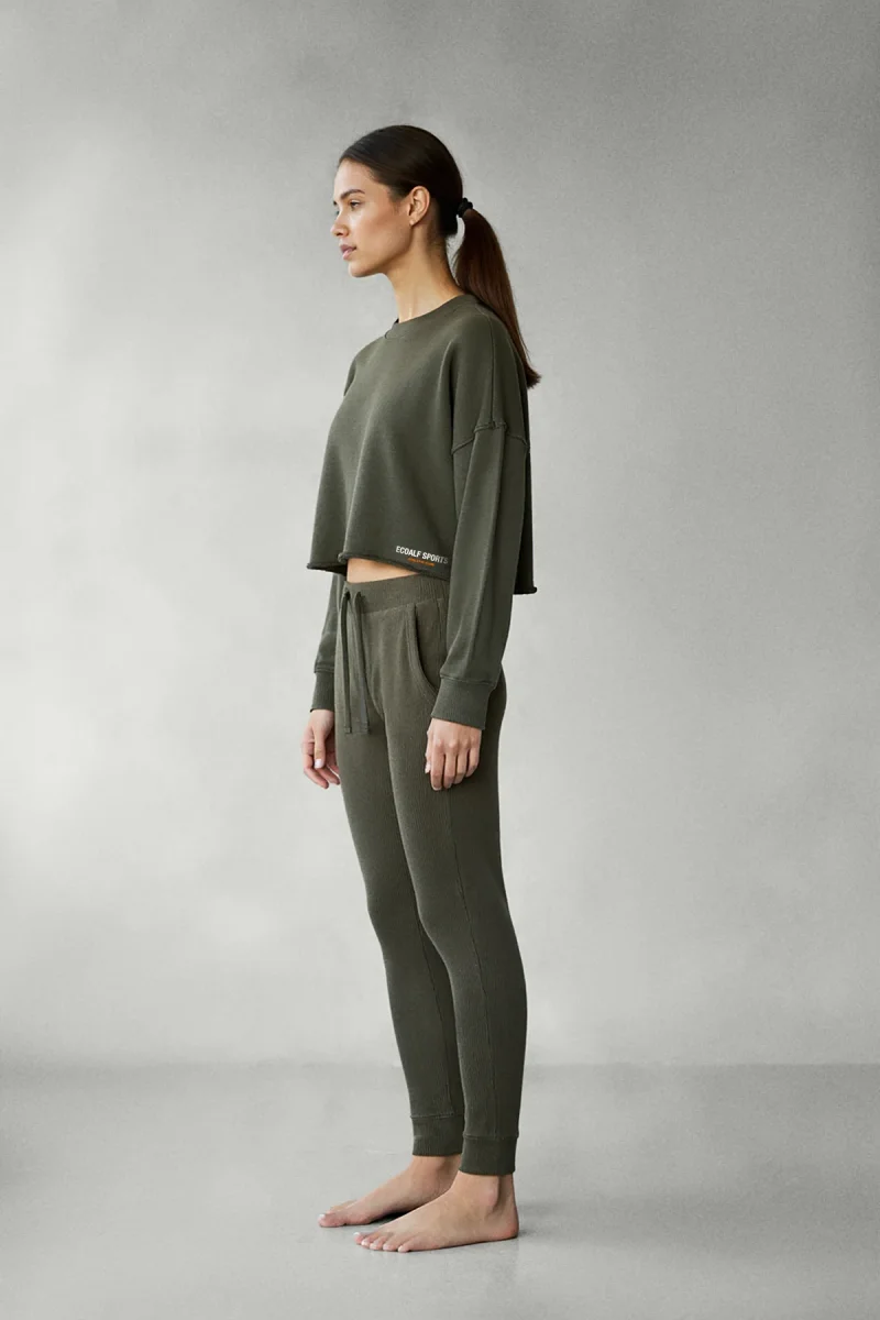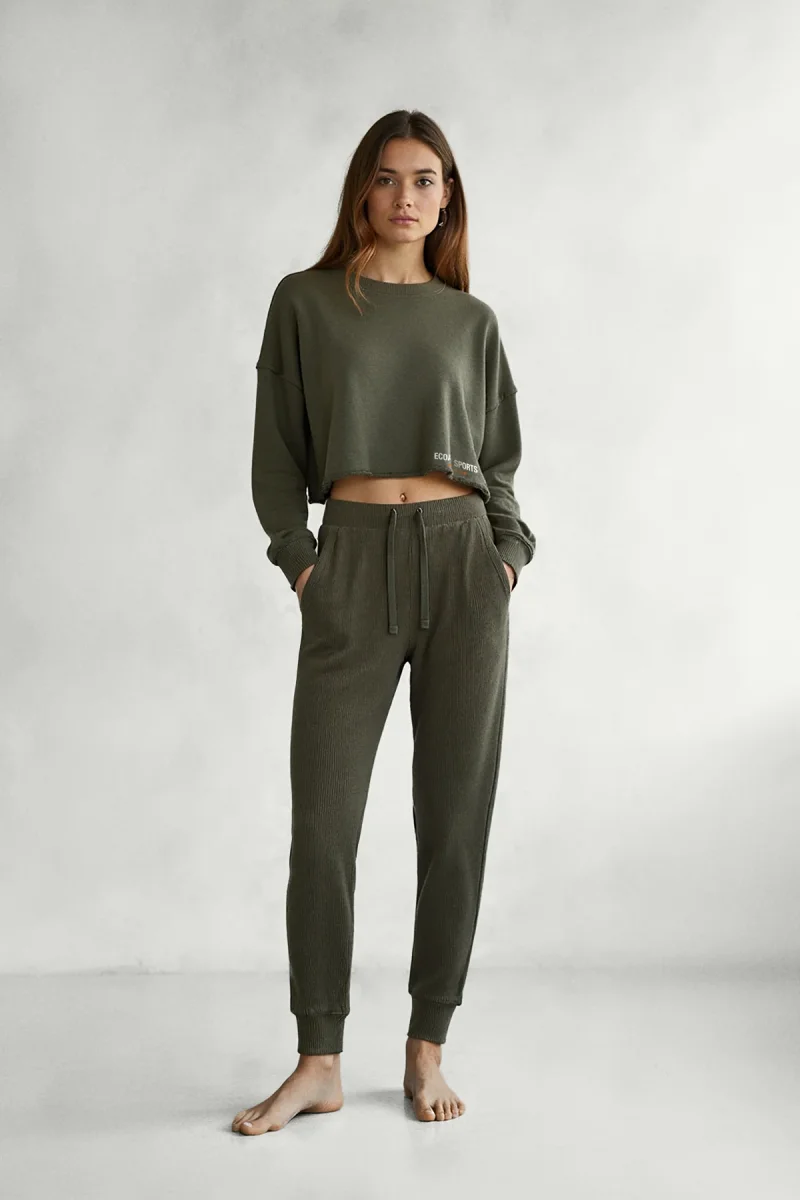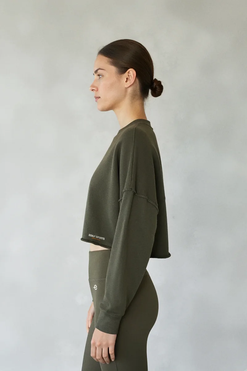 La Sudadera Delan verde es una prenda cómoda y sostenible, ideal para el día a día o para relajarte con estilo. Está fabricada con 100% Algodón reciclado.