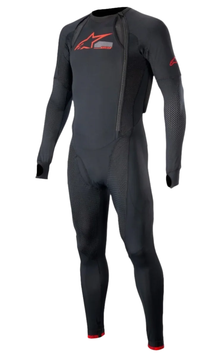 Tech-Air® 10 se puede usar debajo de cualquier traje de cuero Alpinestars Tech-Air® Ready o Tech-Air® Compatible, o cualquier traje de cuero de terceros con 4 cm de espacio alrededor de la circunferencia del pecho del piloto y 2 cm de espacio alrededor de la circunferencia de las caderas del piloto. El espacio adicional para el pecho y las caderas es necesario para poder acomodar la inflación del airbag, en caso de un accidente.