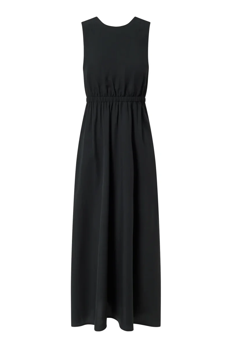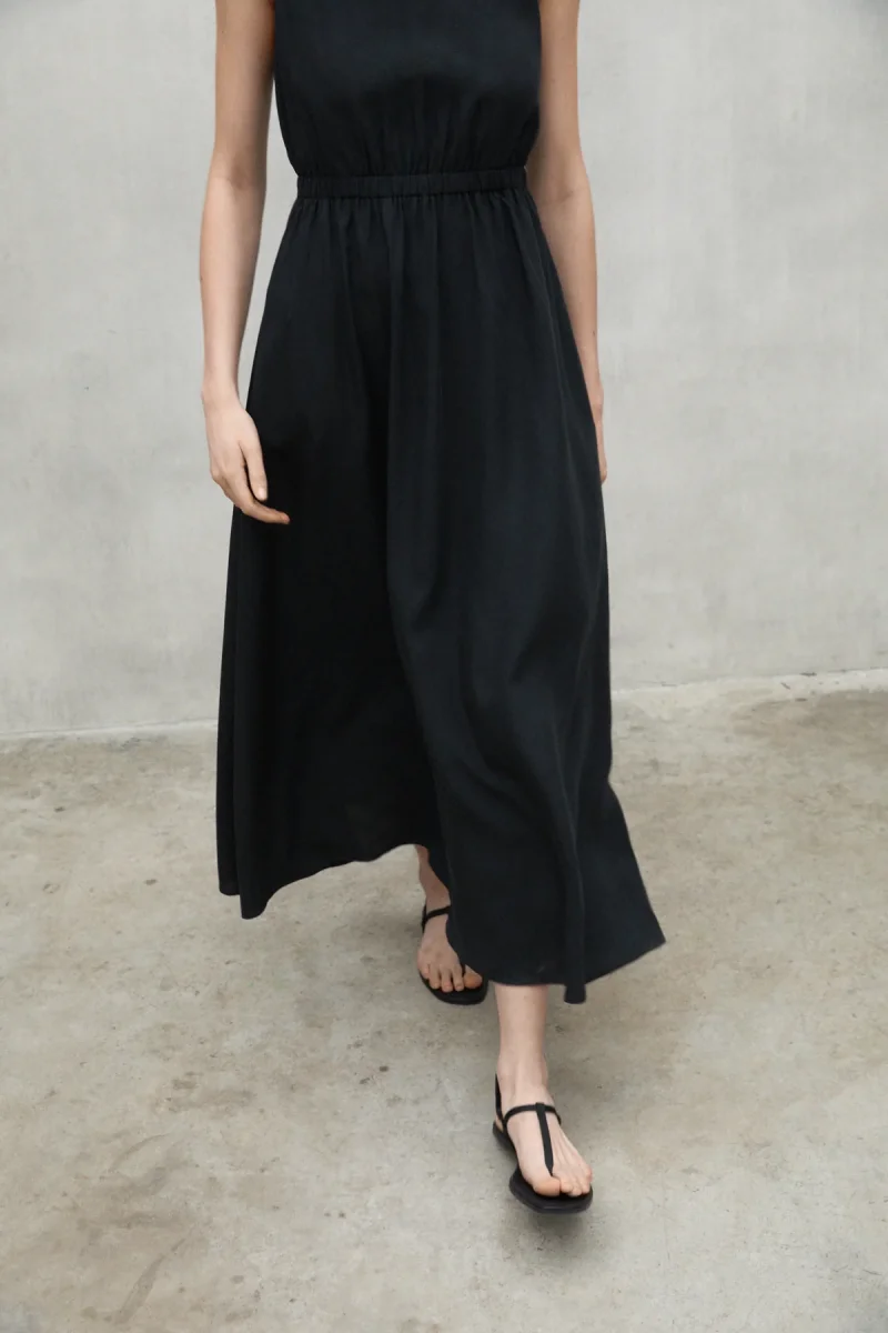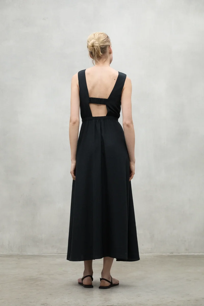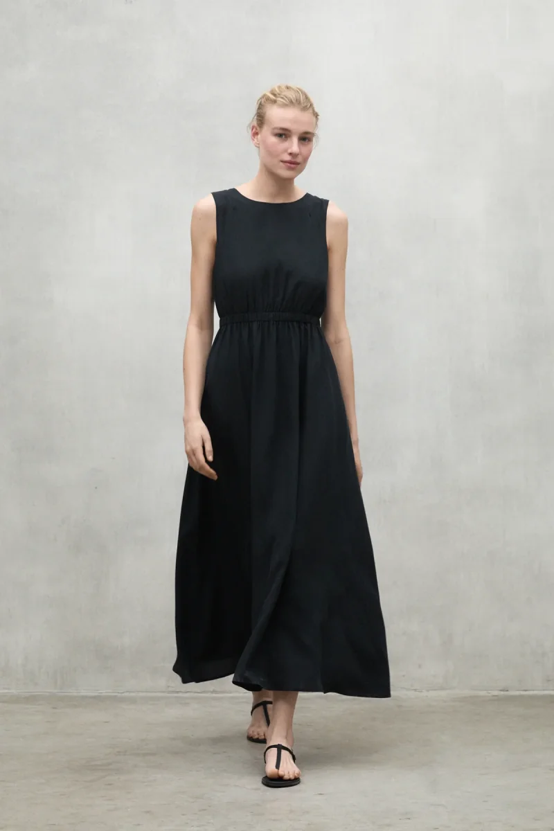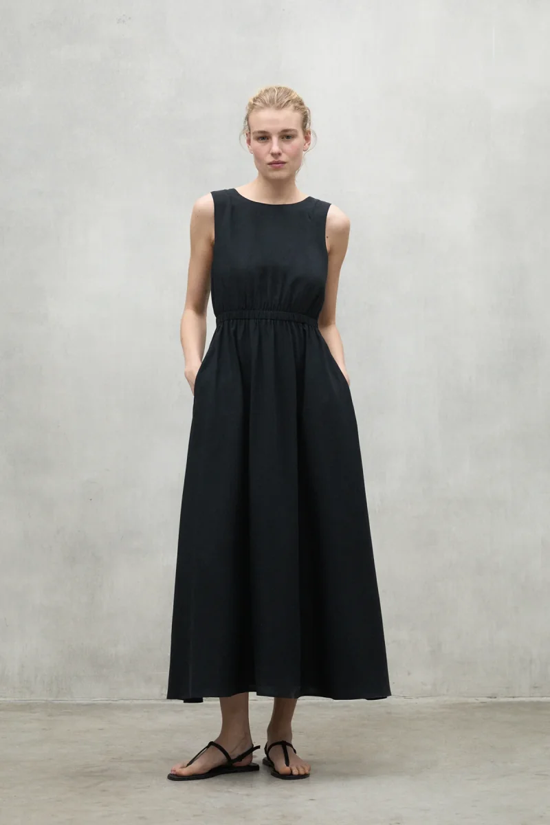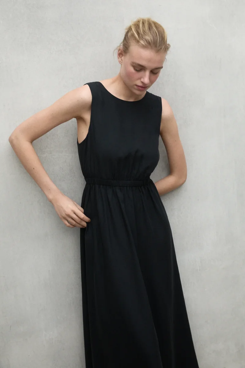 El vestido Karl, elaborado con un material principal de 100% TENCEL™ Lyocell. Estas fibras provienen de pulpa de madera de bosques certificados, y se producen mediante procesos de circuito cerrado que cumplen con los estándares ambientales más exigentes. Presenta un fit regular y un elegante cuello redondo. Con fruncido en la cintura y una espalda abierta, es un vestido versátil que puede adaptarse a diferentes estilos según lo combines.