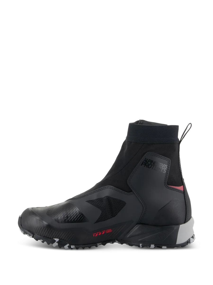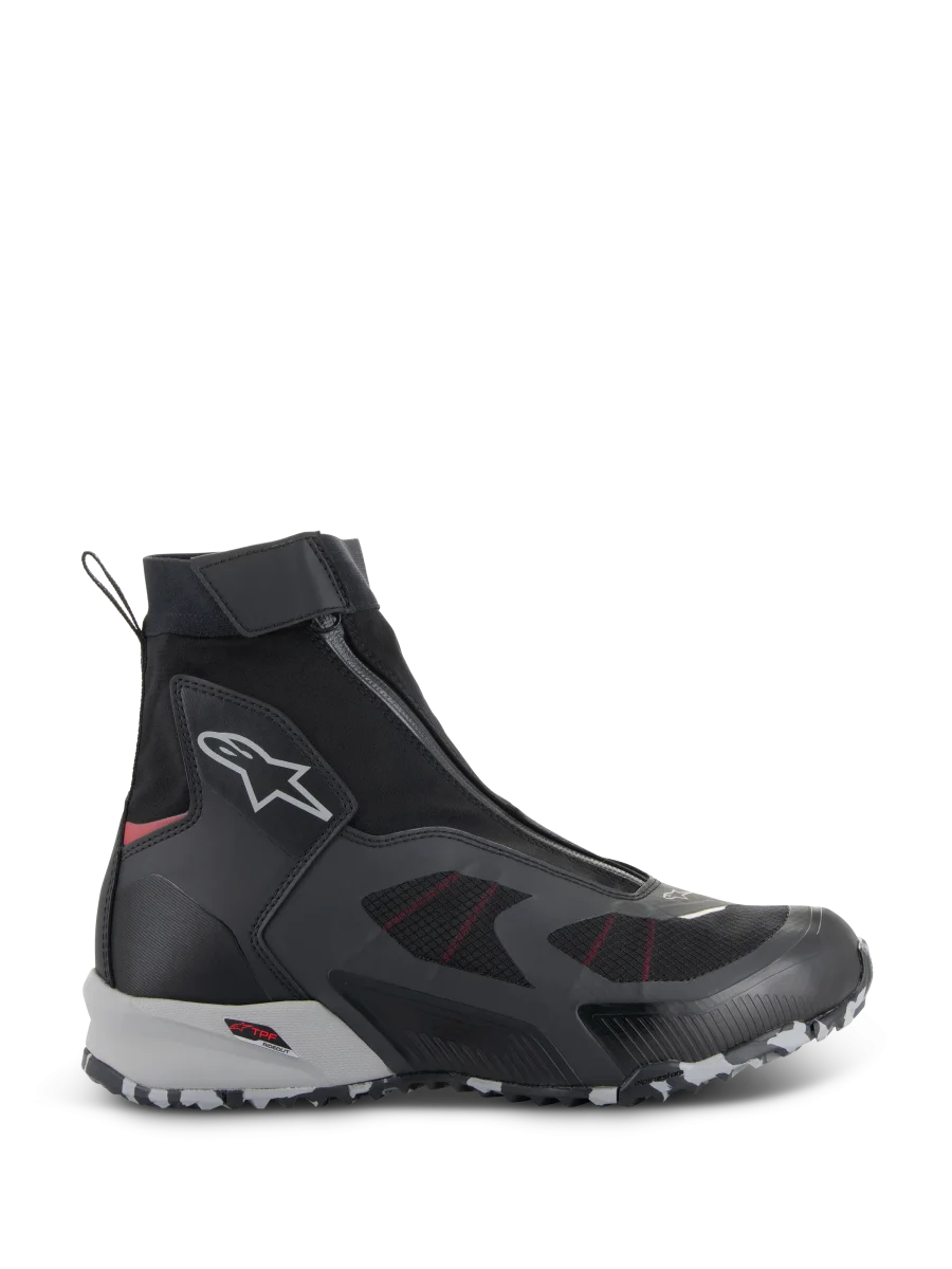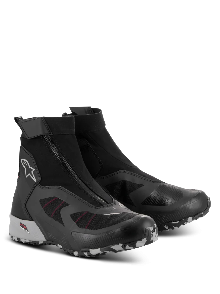 En su interior, los CR-8 GORE-TEX incorporan la entresuela con transversal protection frame TPF de Alpinestars, protección de maléolos de múltiples capas y un talón y puntera reforzados. Los zapatos tienen una plantilla OrthoLite® extraíble para mayor comodidad y transpirabilidad, un cuello elástico y un drop de 10 mm para una excelente ergonomía para caminar al bajarse de la moto.