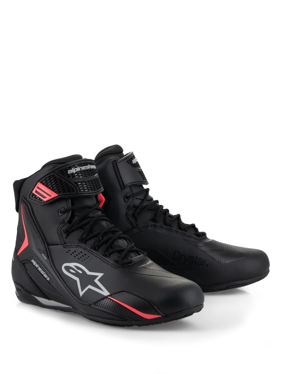 Con innovaciones de rendimiento derivadas de la rica historia de Alpinestars compitiendo en los niveles más altos de los deportes de motor, el Zapato Stella Faster-4 Drystar® utiliza una parte superior de construcción de microfibra sin costuras para crear un zapato de conducción aún más protector y cómodo. Los Stella Faster-4 son extremadamente ligeros, transpirables y duraderos, e incorporan la tecnología Drystar® de Alpinestars, una membrana de múltiples capas diseñada para la permeabilidad a la humedad, transpirabilidad y durabilidad que ofrece a los motociclistas un rendimiento 100% impermeable. Con su suela reforzada que proporciona mejor estabilidad y mayor comodidad, los Zapatos Stella Faster-4 son los zapatos de conducción deportiva perfectos.