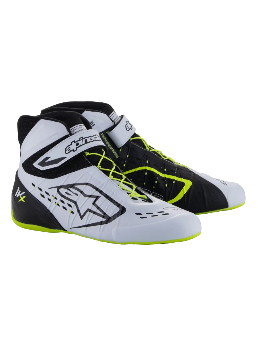 El zapato TECH-1 KX V3 tiene una construcción avanzada y sin costuras termo-soldada que consiste en una película de PU ultra delgada y textil para proporcionar un rendimiento extremadamente ligero y excelente comodidad y ajuste. Tomas de aire cortadas con láser y perforaciones en la punta y ambos lados para mayor transpirabilidad. Primeros zapatos homologados según el nuevo estándar de karting de la FIA. Con características derivadas de la Fórmula 1, junto con innovaciones específicas para la pista de karting, el nuevo zapato Tech-1 KX V3 ahora es más ligero y más transpirable con un sistema de cordones asimétrico revisado para ajustarse más de cerca al pie. El uso de una película de PU delgada añade durabilidad mientras reduce la construcción de costuras y puntos de presión. Los cortes y perforaciones con láser en la película, combinados con malla 3D, ofrecen máxima transpirabilidad.