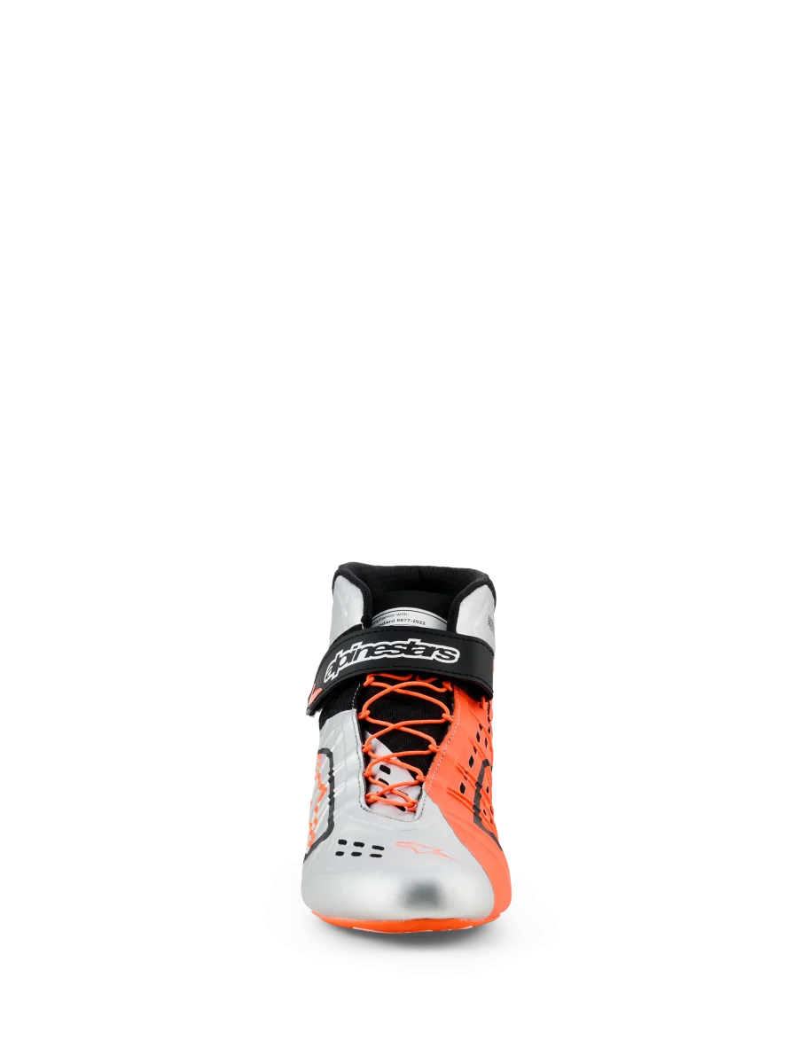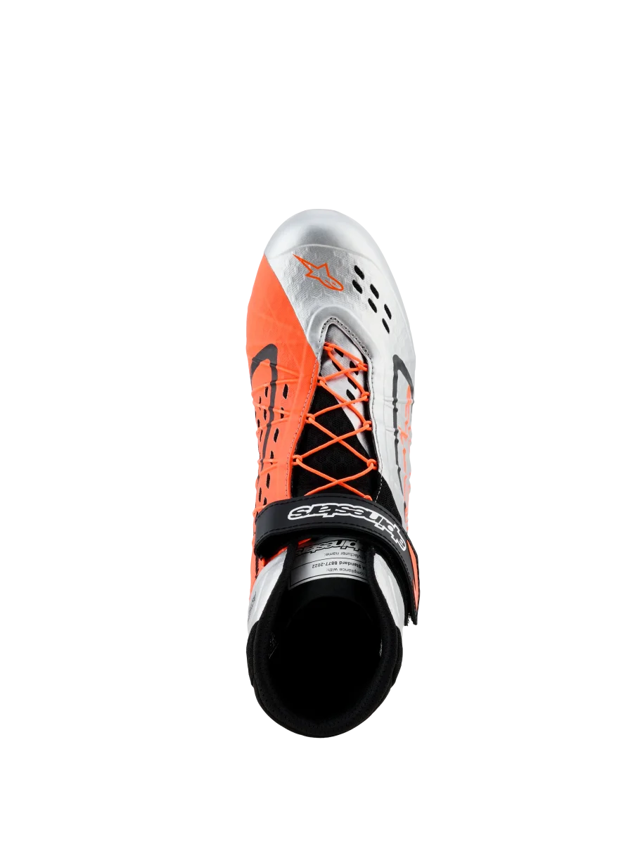 El zapato TECH-1 KX V3 tiene una construcción avanzada y sin costuras termo-soldada que consiste en una película de PU ultra delgada y textil para proporcionar un rendimiento extremadamente ligero y excelente comodidad y ajuste. Tomas de aire cortadas con láser y perforaciones en la punta y ambos lados para mayor transpirabilidad. Primeros zapatos homologados según el nuevo estándar de karting de la FIA. Con características derivadas de la Fórmula 1, junto con innovaciones específicas para la pista de karting, el nuevo zapato Tech-1 KX V3 ahora es más ligero y más transpirable con un sistema de cordones asimétrico revisado para ajustarse más de cerca al pie. El uso de una película de PU delgada añade durabilidad mientras reduce la construcción de costuras y puntos de presión. Los cortes y perforaciones con láser en la película, combinados con malla 3D, ofrecen máxima transpirabilidad.