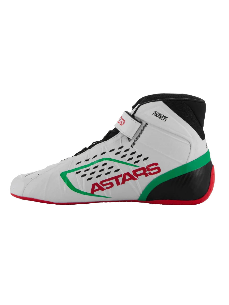 El zapato TECH-1 KX V3 tiene una construcción avanzada y sin costuras termo-soldada que consiste en una película de PU ultra delgada y textil para proporcionar un rendimiento extremadamente ligero y excelente comodidad y ajuste. Tomas de aire cortadas con láser y perforaciones en la punta y ambos lados para mayor transpirabilidad. Primeros zapatos homologados según el nuevo estándar de karting de la FIA. Con características derivadas de la Fórmula 1, junto con innovaciones específicas para la pista de karting, el nuevo zapato Tech-1 KX V3 ahora es más ligero y más transpirable con un sistema de cordones asimétrico revisado para ajustarse más de cerca al pie. El uso de una película de PU delgada añade durabilidad mientras reduce la construcción de costuras y puntos de presión. Los cortes y perforaciones con láser en la película, combinados con malla 3D, ofrecen máxima transpirabilidad.