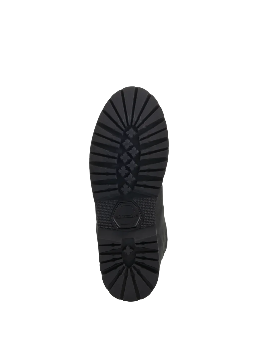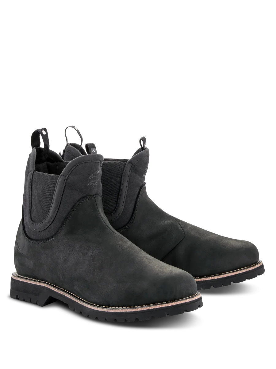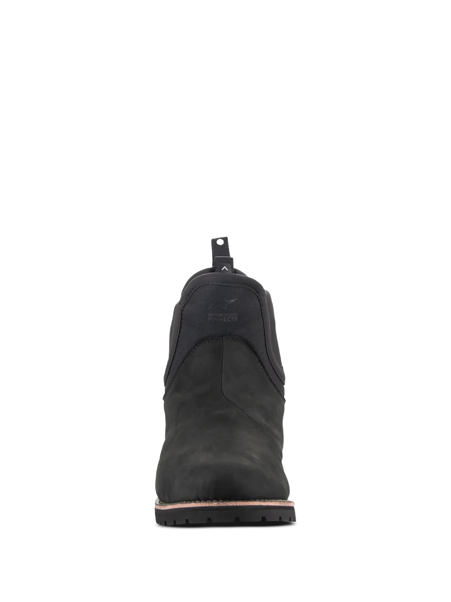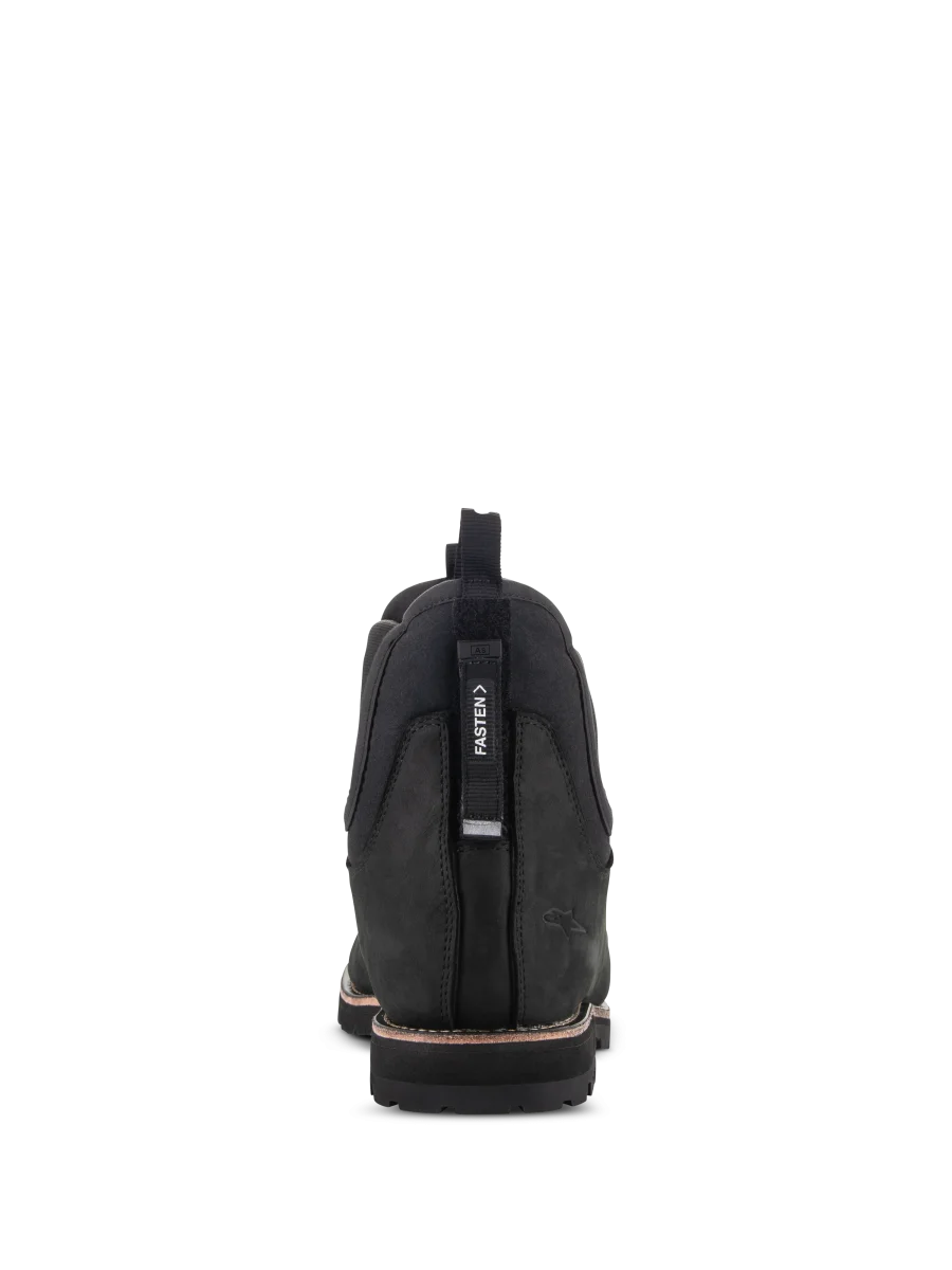URBAN LIFESTYLE Basado en el icico y clásico estilo de botas Chelsea, el calzado Turnstone es un calzado de protecci para motocicleta realizado en cuero bovino de 1,5 mm que ofrece una comodidad perfecta durante todo el día. El calzado Turnstone está disedo con un innovador sistema de retenci para mantener el calzado de forma seguro en su lugar con un ajuste personalizado, y esto se logra a través de un innovador sistema de cordones internos ocultos que el usuario puede ajustar y apretar correctamente mediante la activaci de la lengta ajustable en la parte posterior del calzado. 1. Las botas Turnstone son un calzado de protección; los discos de protección del tobillo están inte.grados en la banda elástica y la parte lateral y medial se han dise–ado en diferentes alturas para cubrir mejor el maléolo. 2. Las botas Turnstone proporcionan una protección transversal de compresión de nivel 1 con certificación CE. 3. La puntera medial externa del tobillo de doble densidad protege la zona del maléolo contra los impactos, con un contrafuerte del talón y una puntera reforzada para una mayor resistencia. 4. La clásica entrada elástica ofrece una gran facilidad de uso y comodidad en cualquier situación. • Piel de vacuno de alta calidad. • Innovador sistema de retención oculto. • Confort Alpinestars en la conducción y al andar. • Certificado CE.